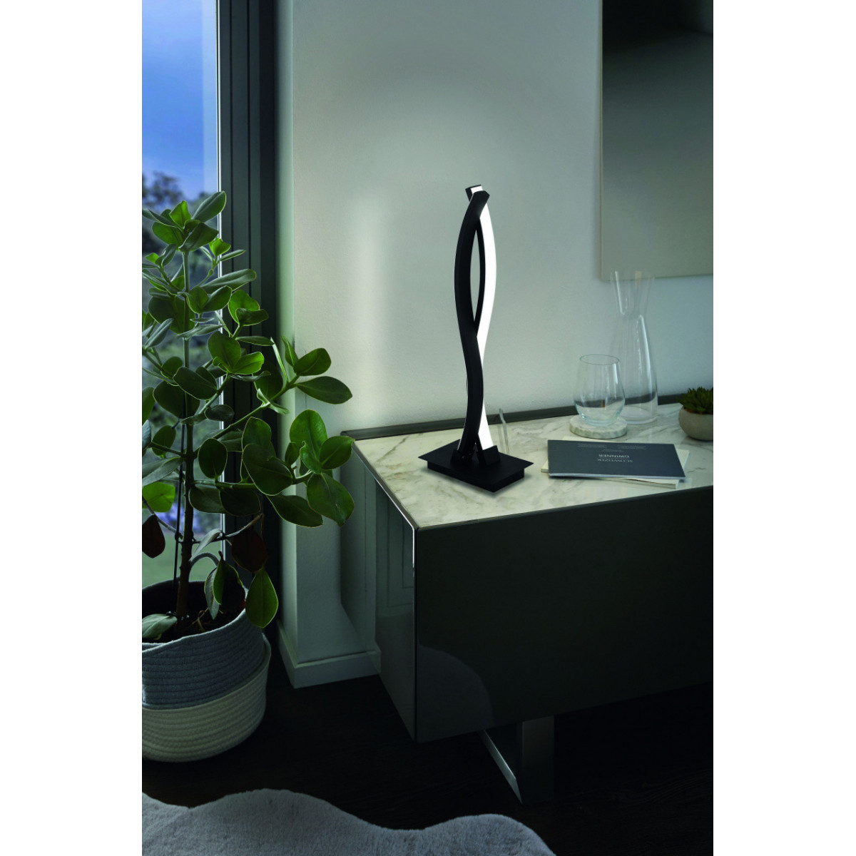 Eglo LASANA 3 Lampada da Tavolo Struttura in Metallo, Finitura Nero, Diffusore in Policarbonato, Finitura Bianco 16x10xh46 cm