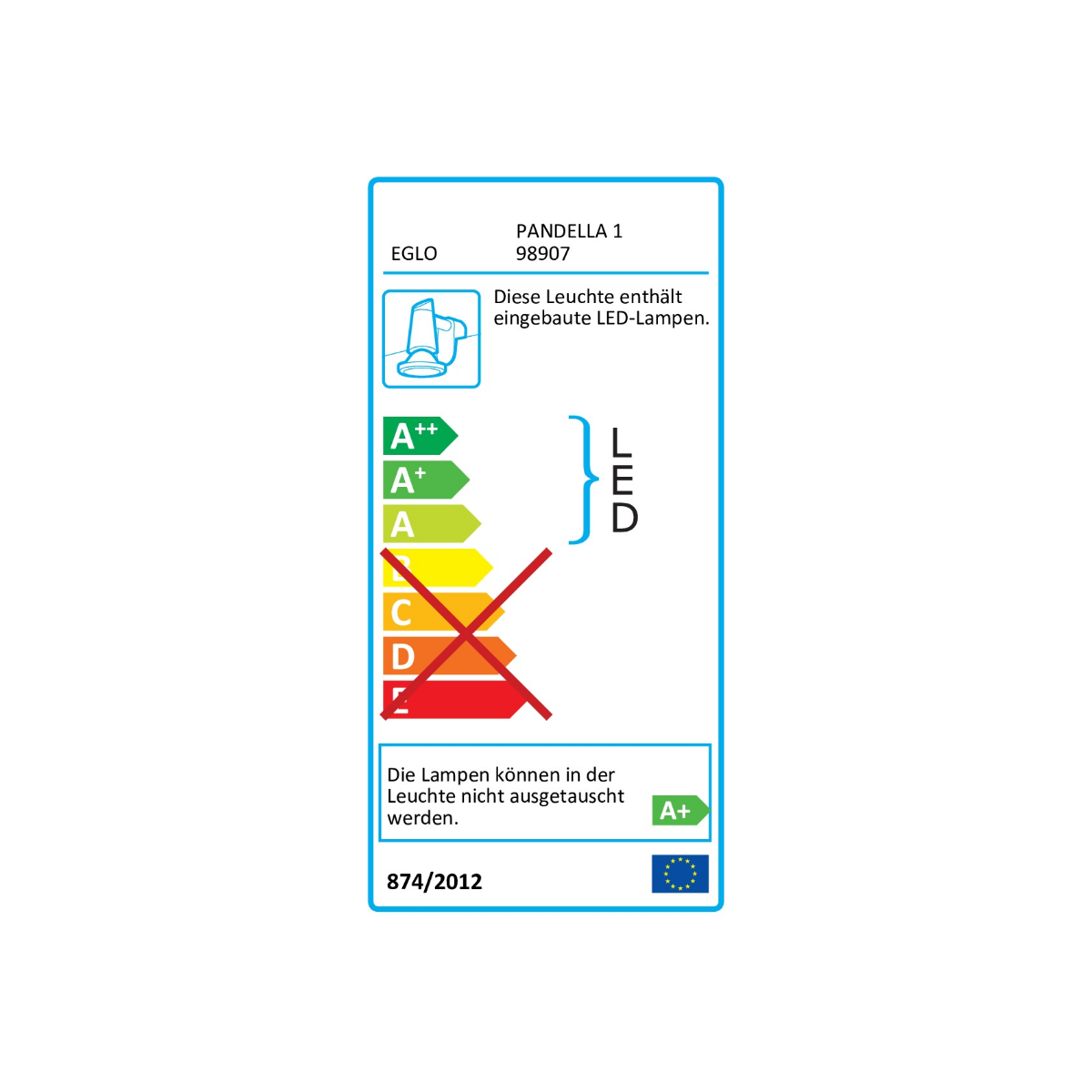 Eglo PANDELLA 1 Luce da Specchio in Alluminio, Finitura Nero, Diffusore in Policarbonato, Finitura Bianco IP44 40x12xh4 cm