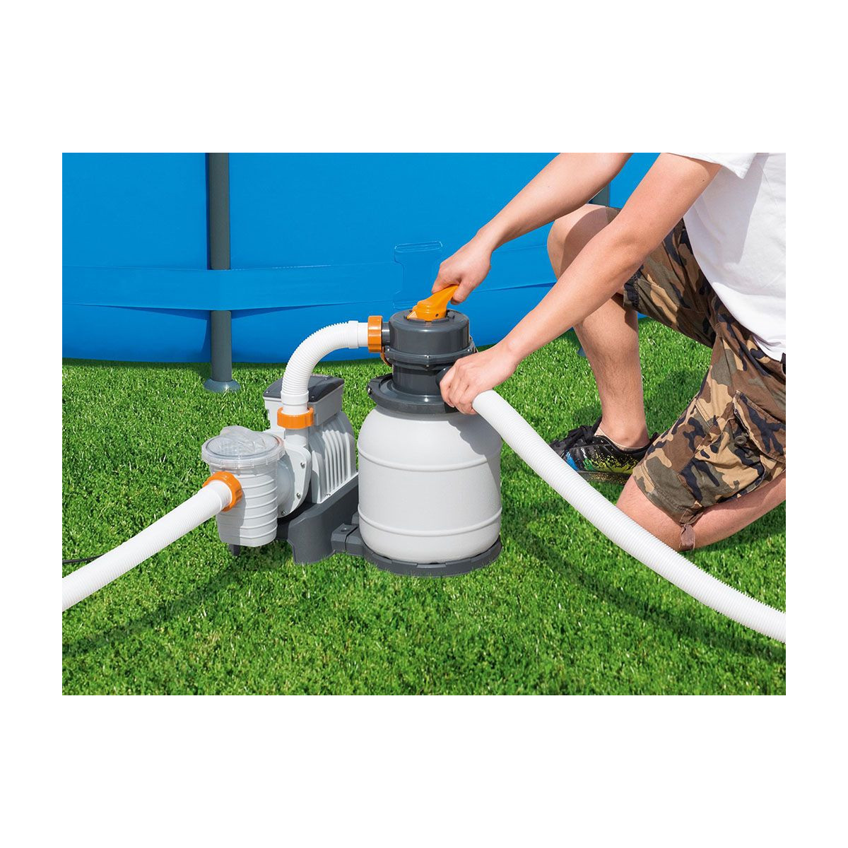 Con una pratica valvola a 6 funzioni per gestire le funzioni del filtro, la pompa di filtraggio Flowclear è dotata di un timer integrato per programmare facilmente i cicli di funzionamento automatico e un manometro di facile leggibilità. Valvola a 6 funzioni: filtrazione, contro lavaggio, risciacquo, ricircolo, svuotamento, stop.