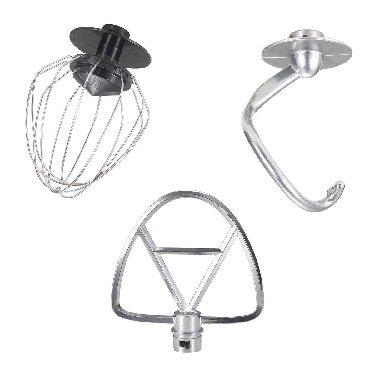 Gancio robusto per ogni tipo di impasto e le fruste in acciaio per mescolare e montare.