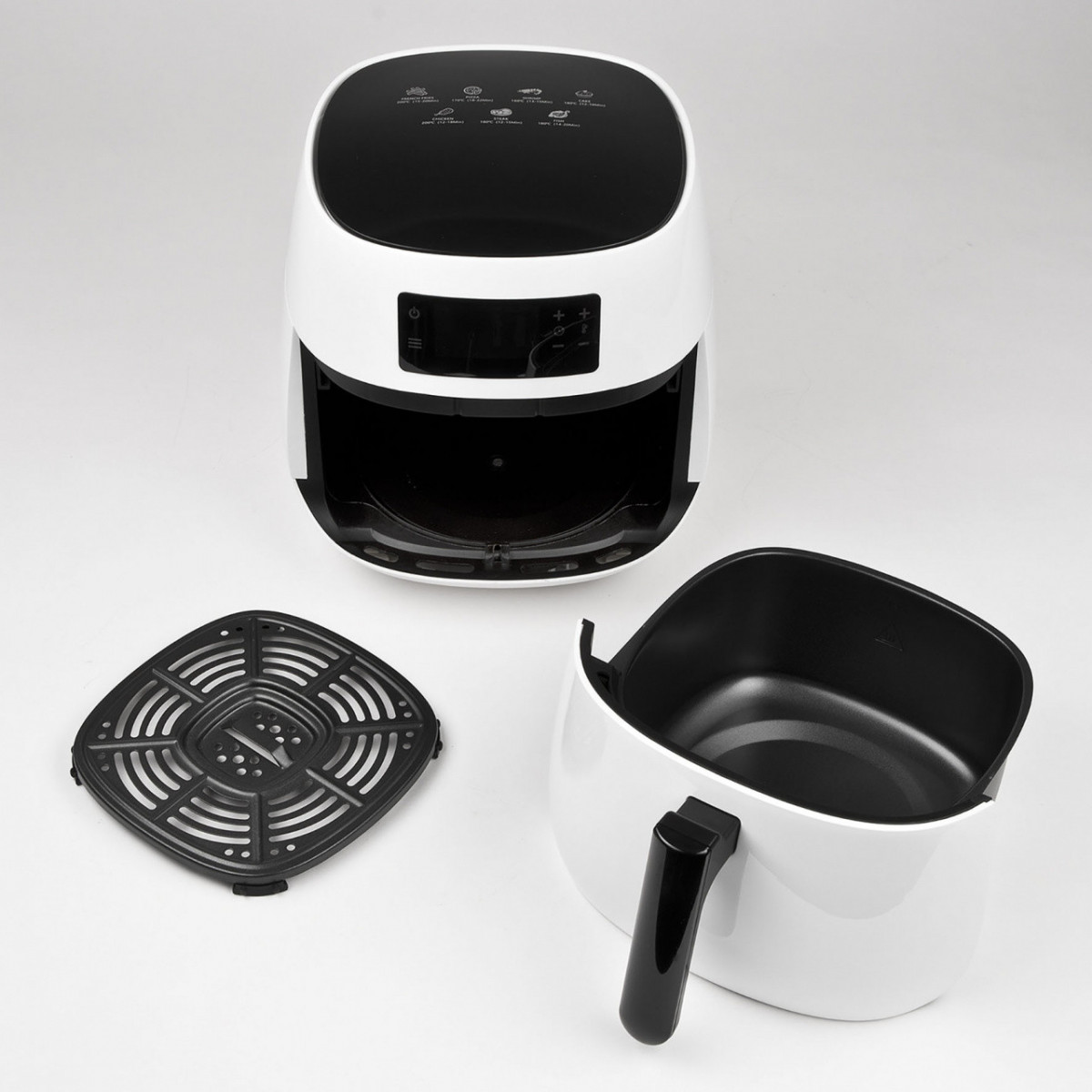 Ma non solo... Le possibilità di cottura con Friggisano sono molteplici. Nella nostra friggitrice ad aria potrete anche cuocere una torta, cucinare al forno il pesce o le verdure e persino arrostire la carne! Grazie ai 7 programmi preimpostati potrete friggere in modo impeccabile patatine, bacon, pollo, crostacei, verdure, pesce senza sporcare in cucina. Equipaggiata con timer da 30 minuti, Friggisano è fornita di contenitore antiaderente da 4 litri di capacità, ideale per cucinare per tutta la famiglia e, per ottenere una cottura sempre perfetta, la temperatura può essere regolata anche manualmente tra 80 a 200°C. Per la massima praticità, Friggisano è dotata di ampio display digitale che permette di controllare in ogni momento le impostazioni selezionate, ed anche la pulizia è un gioco da ragazzi! È sufficiente utilizzare una spugna non abrasiva e acqua calda per pulire dopo la cottura.
