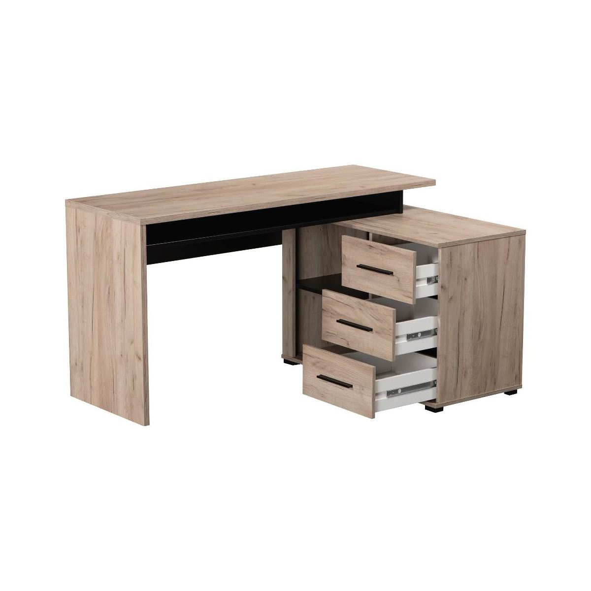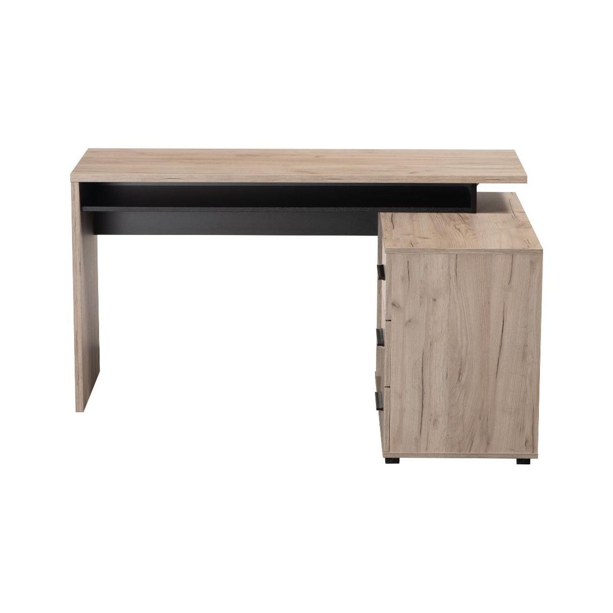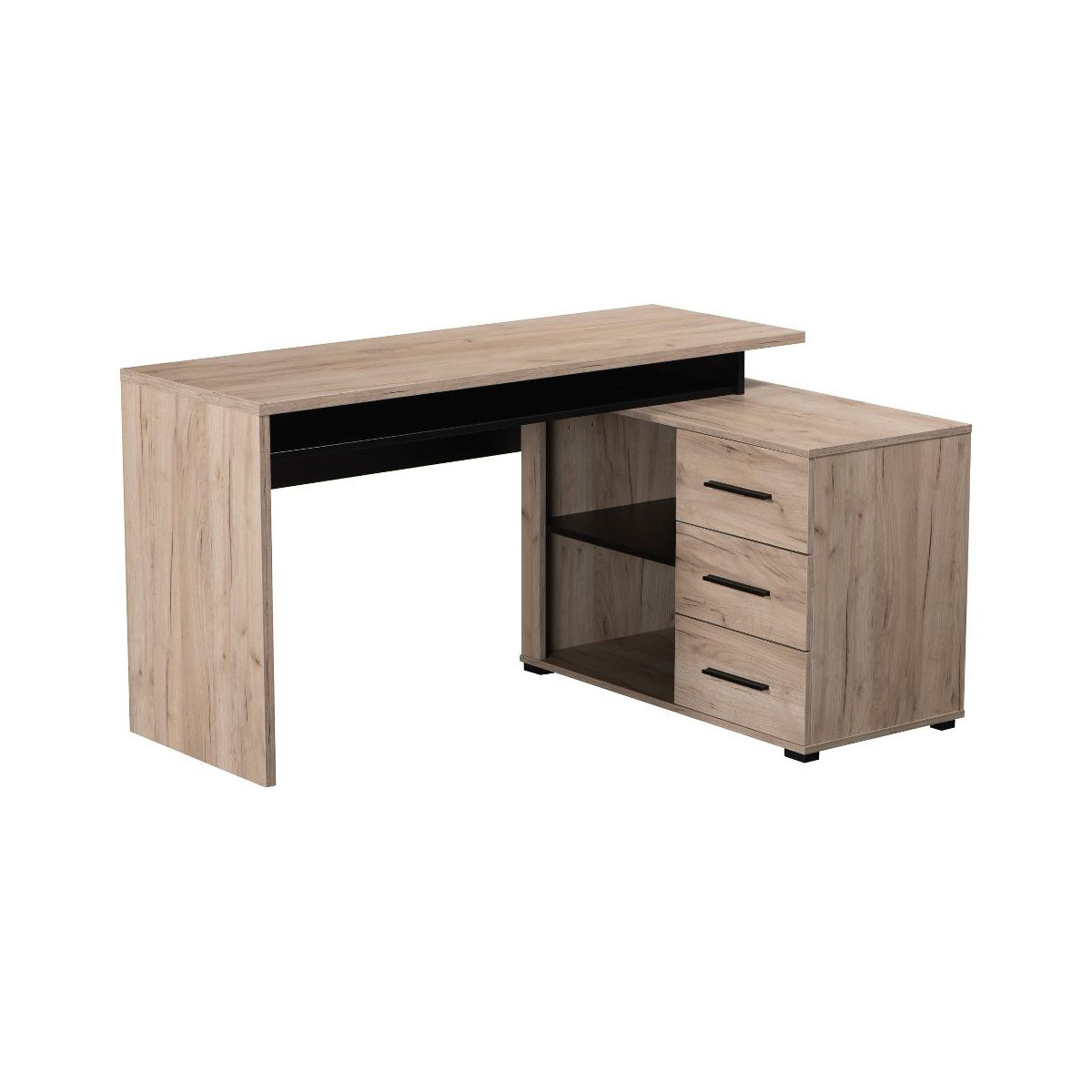 Kit Furniture Norway Scrivania, 3 Cassetto, 1 Vano, 137,5x101x,5x75 cm, Colore Rovere e Nero Opaco