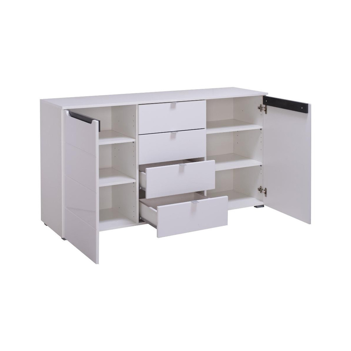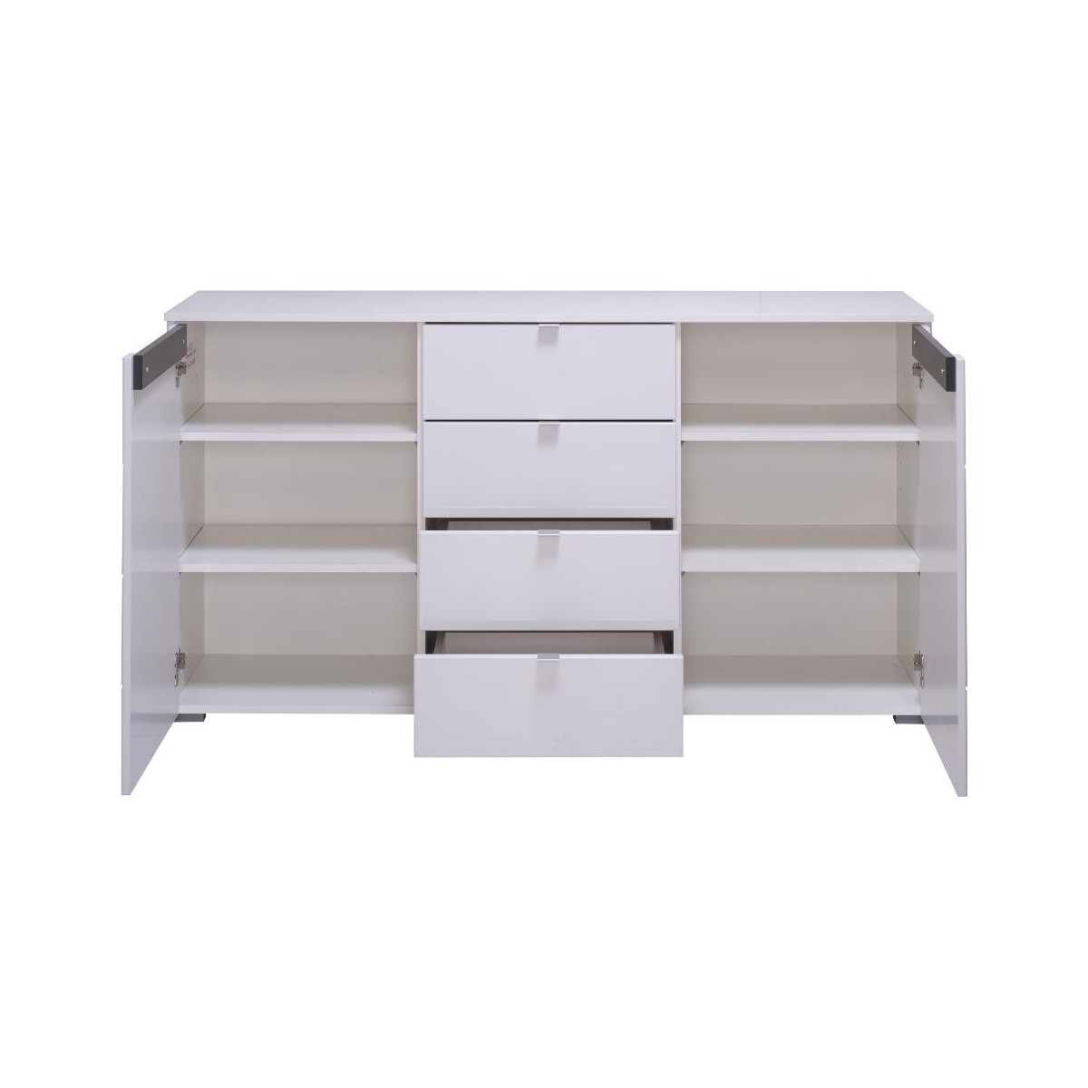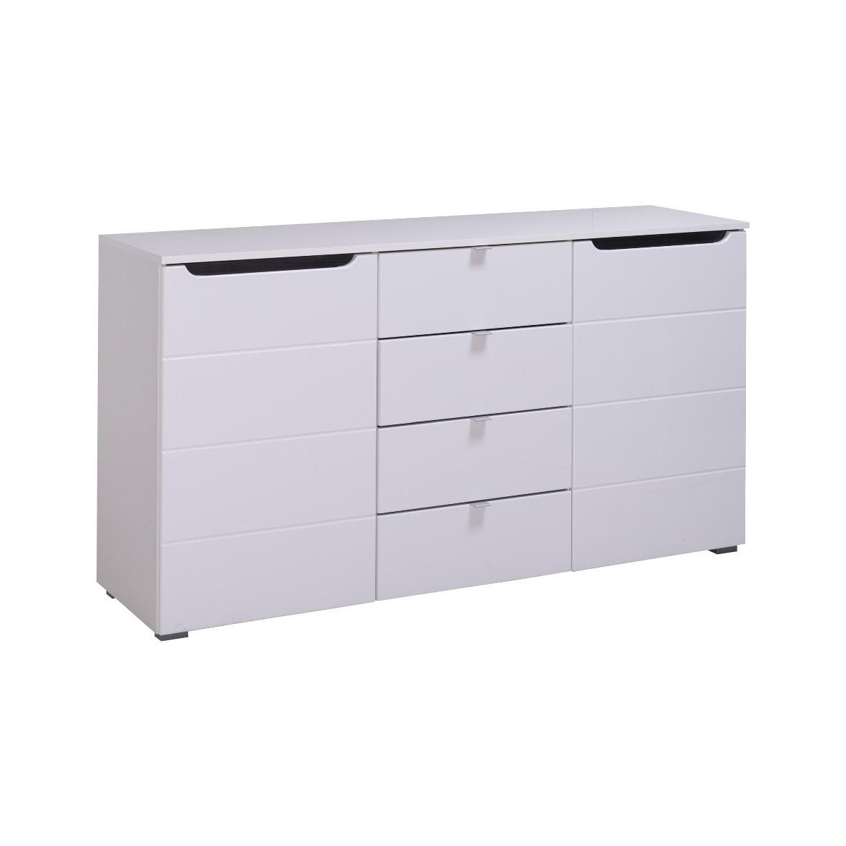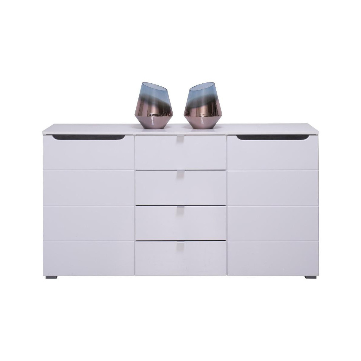 Kit Furniture Zurich Cassettiera, 2 Ante Battenti, 4 Cassetti, 150x41,5x80,5 cm, Bianco Opaco