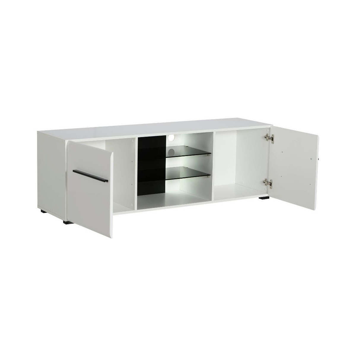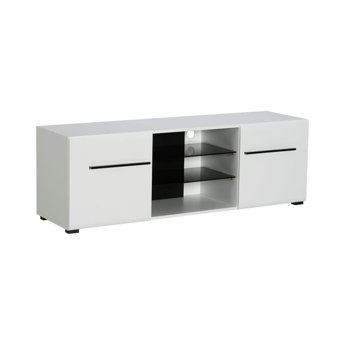Kit Furniture Juliette Mobile TV, 2 Ante Battenti, 1 Vano Giorno, 2 Ripiani, 150x41,5x49,5 cm, Bianco Opaco e Lucido
