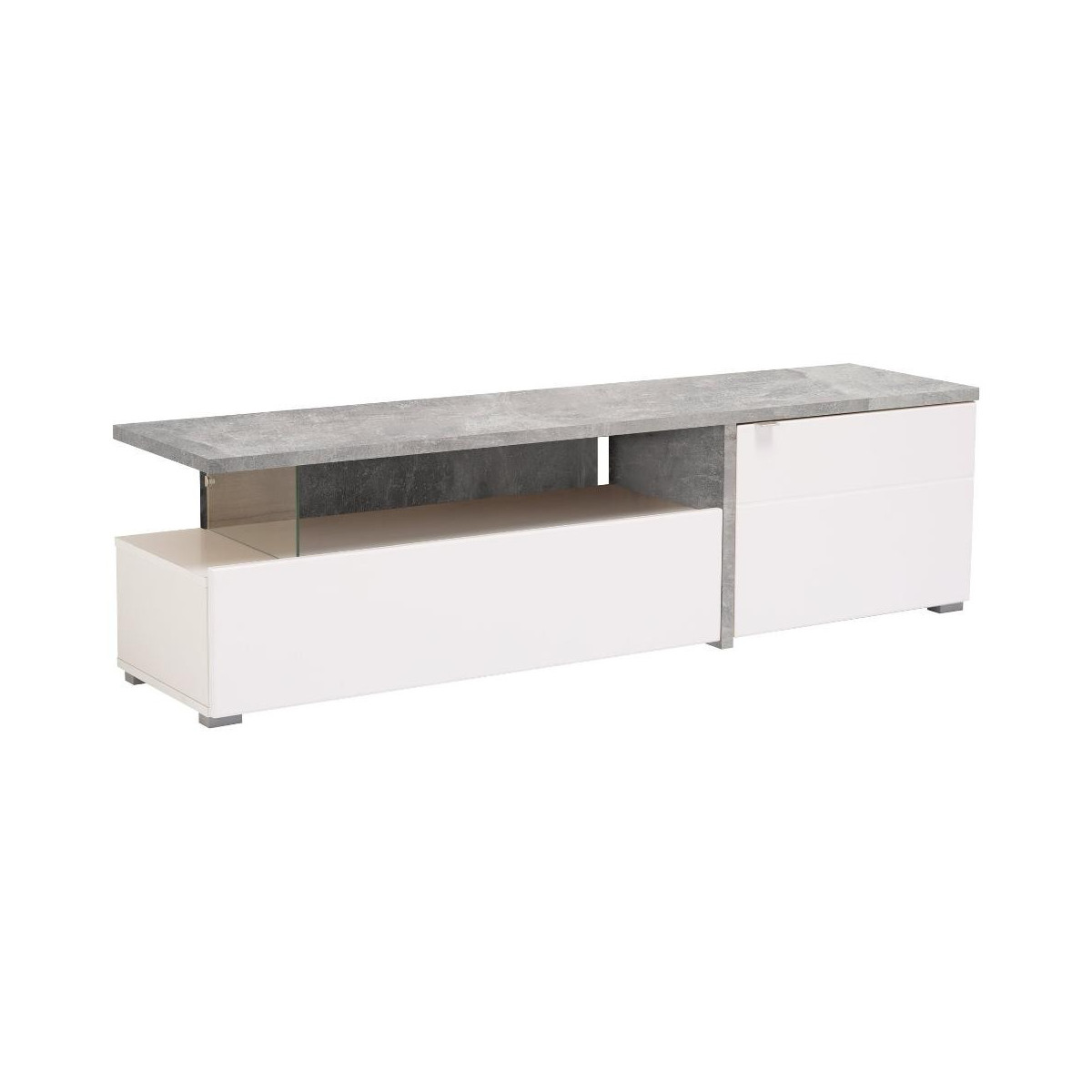 Kit Furniture Amelie Mobile TV, 1 Anta Battente, 1 Anta Ribalta, 1 Vano Giorno, 160,5x40x44,5 cm, Bianco Opaco e Cemento
