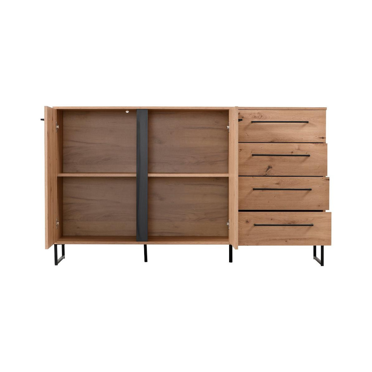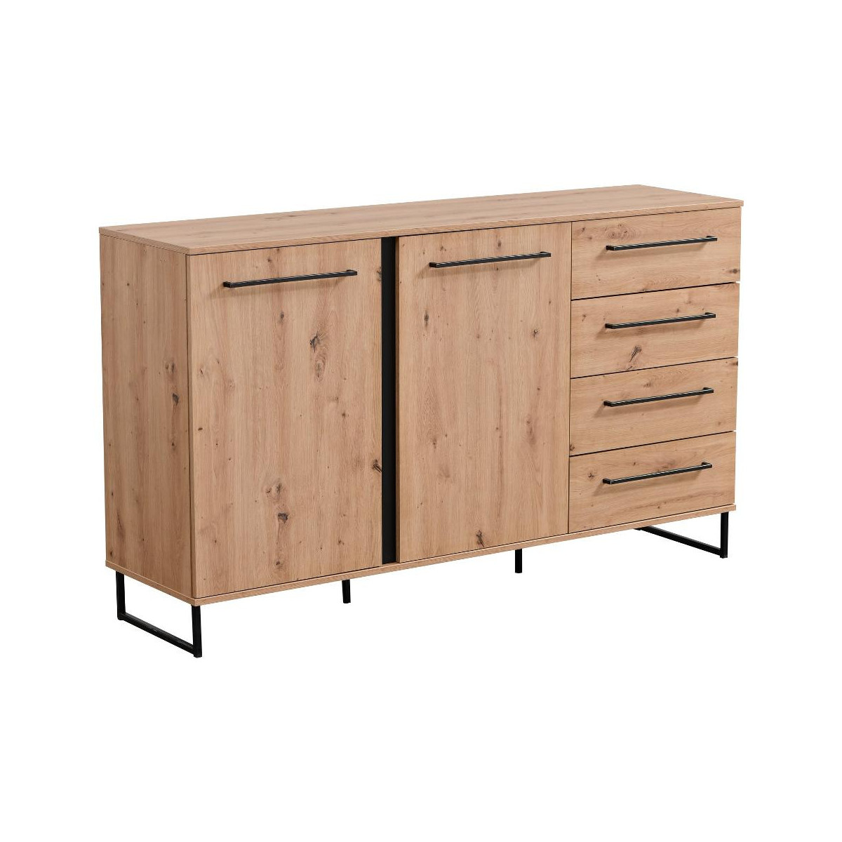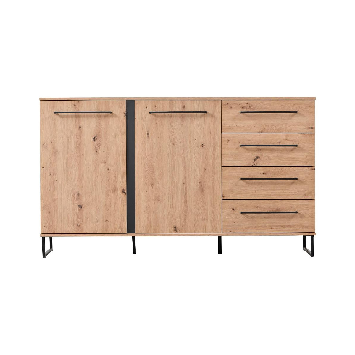 Composto da 2 ante battenti, 4 cassetti. Apertura mista, con maniglia. Frontale realizzato in truciolare. Struttura realizzata in truciolare. Completo di 2 ripiani. Posizionabile a terra. Necessita di assemblaggio, istruzioni incluse. Indicazioni per la manutenzione incluse
