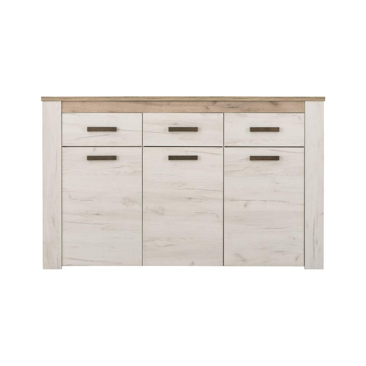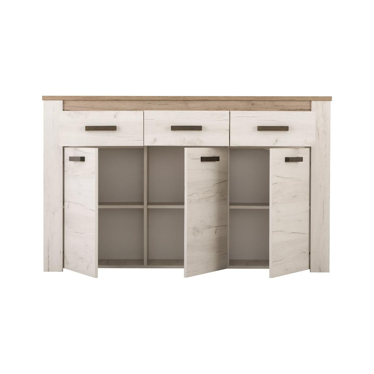 Kit Furniture Denmark Cassettiera, 3 Ante Battenti, 3 Cassetti, 3 Ripiani, 160x36,5x98 cm, Rovere sbiancato e Rovere