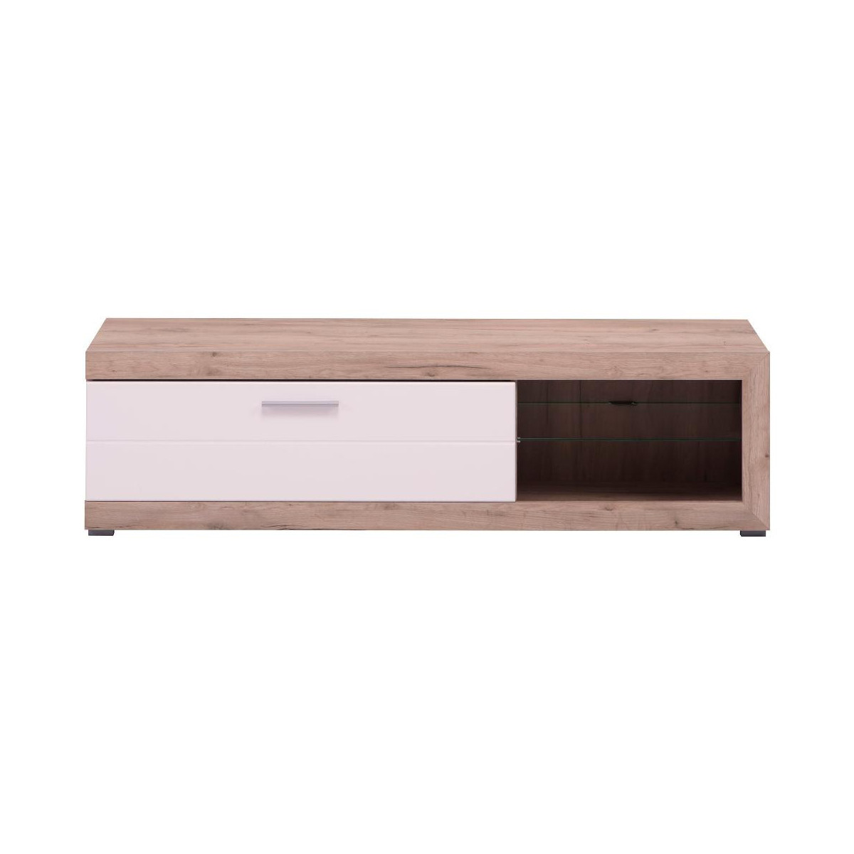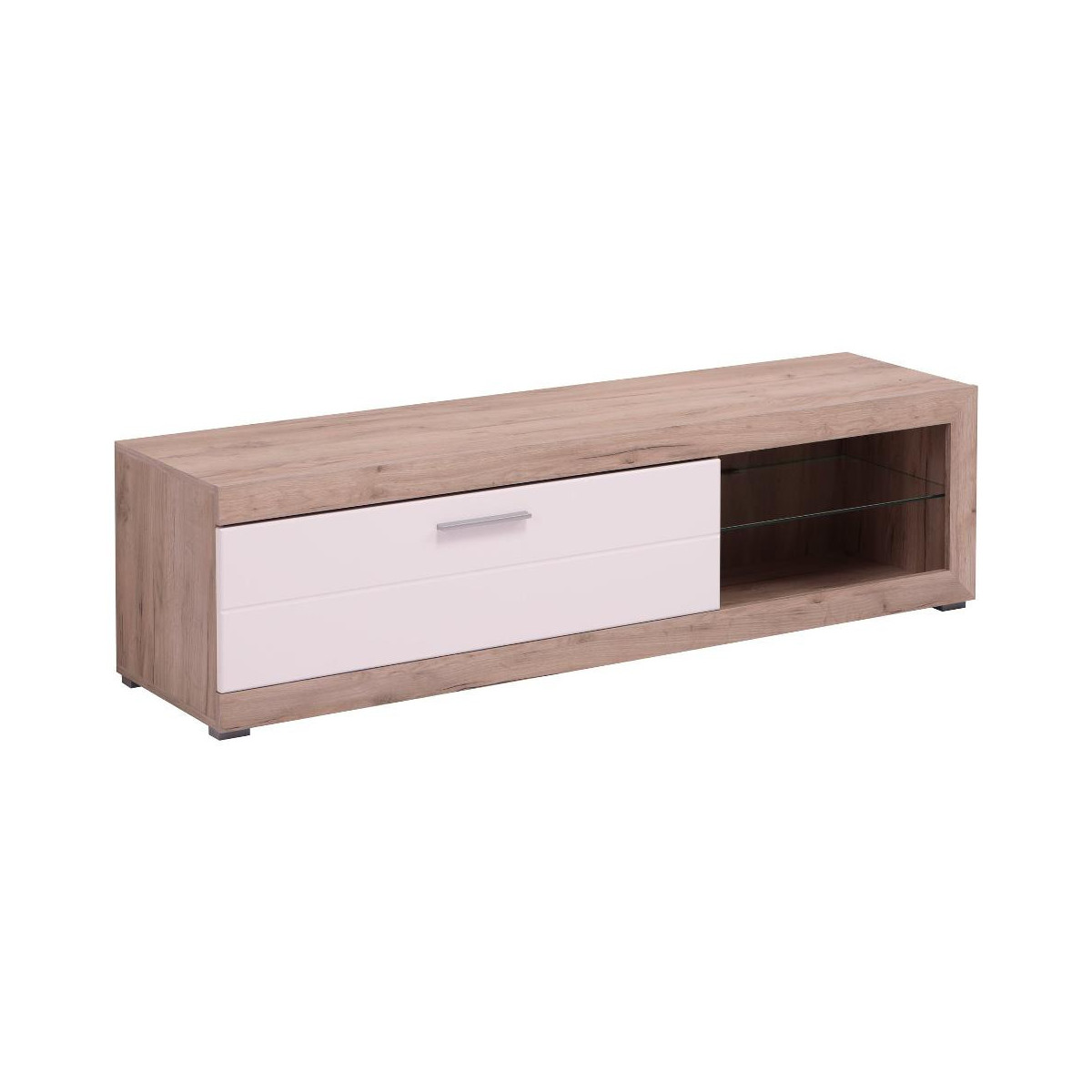 Kit Furniture Emily Mobile TV, 1 Anta Ribalta, 1 Vano Giorno, 1 Ripiano, 181x45,5x43,5 cm, Rovere e Bianco Lucido