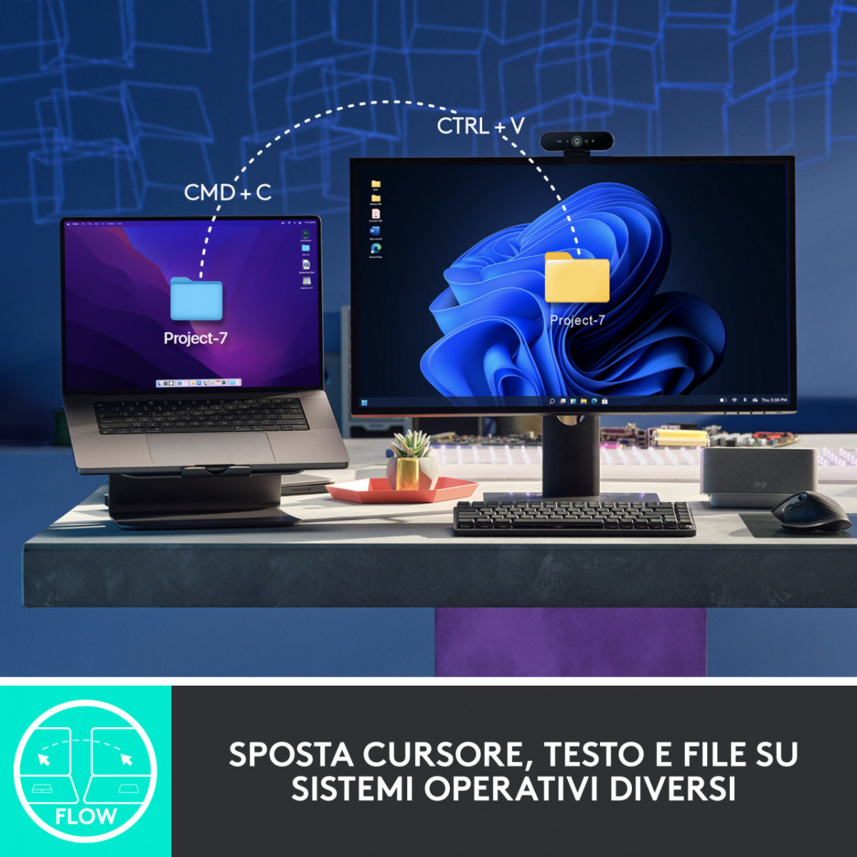 I pulsanti silenziosi offrono una sensazione al tatto ottimale e un rumore dei clic ridotto del 90%. MX Master 3S è ora dotato di un sensore ottico a 8.000 dpi per una reattività di nuova generazione su qualsiasi superficie, anche sul vetro.