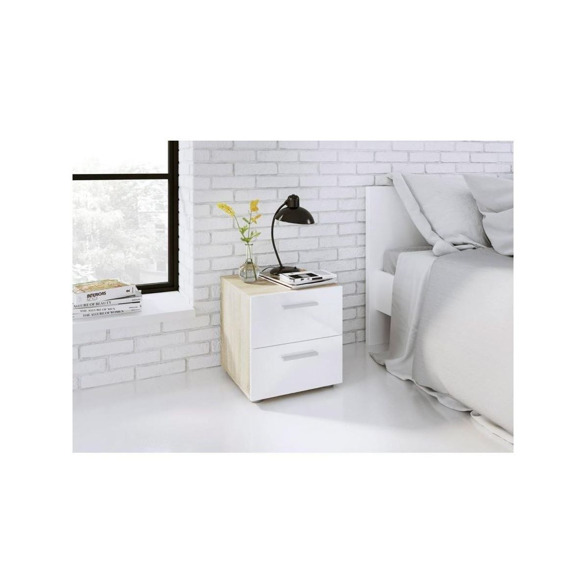 Tvilum Pepe, Comodino, 2 Cassetti con Maniglia, 40,2x40x42,3 cm, Bianco e Rovere