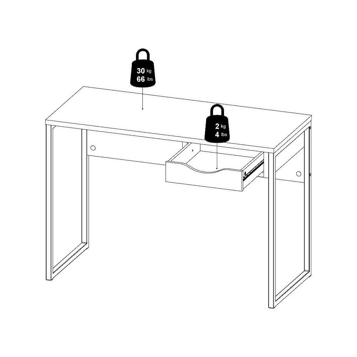 Piano realizzato in truciolare. Struttura realizzata in acciaio. Completo di 1 cassetto, ferramenta. Posizionabile a terra. Necessita di assemblaggio, istruzioni incluse. Indicazioni per la manutenzione incluse