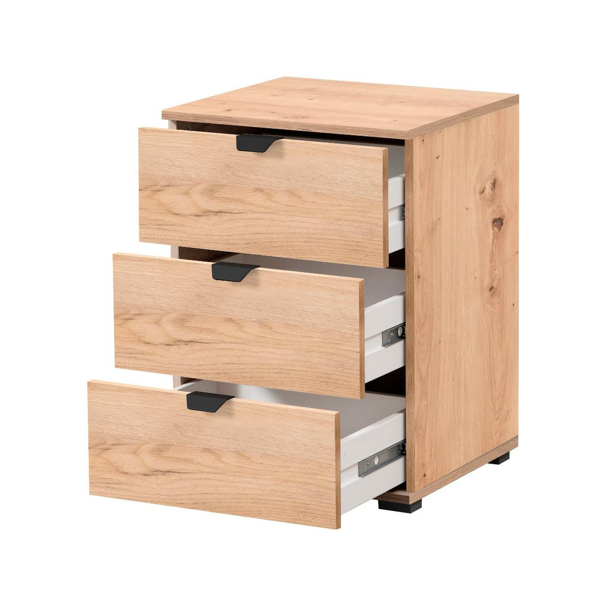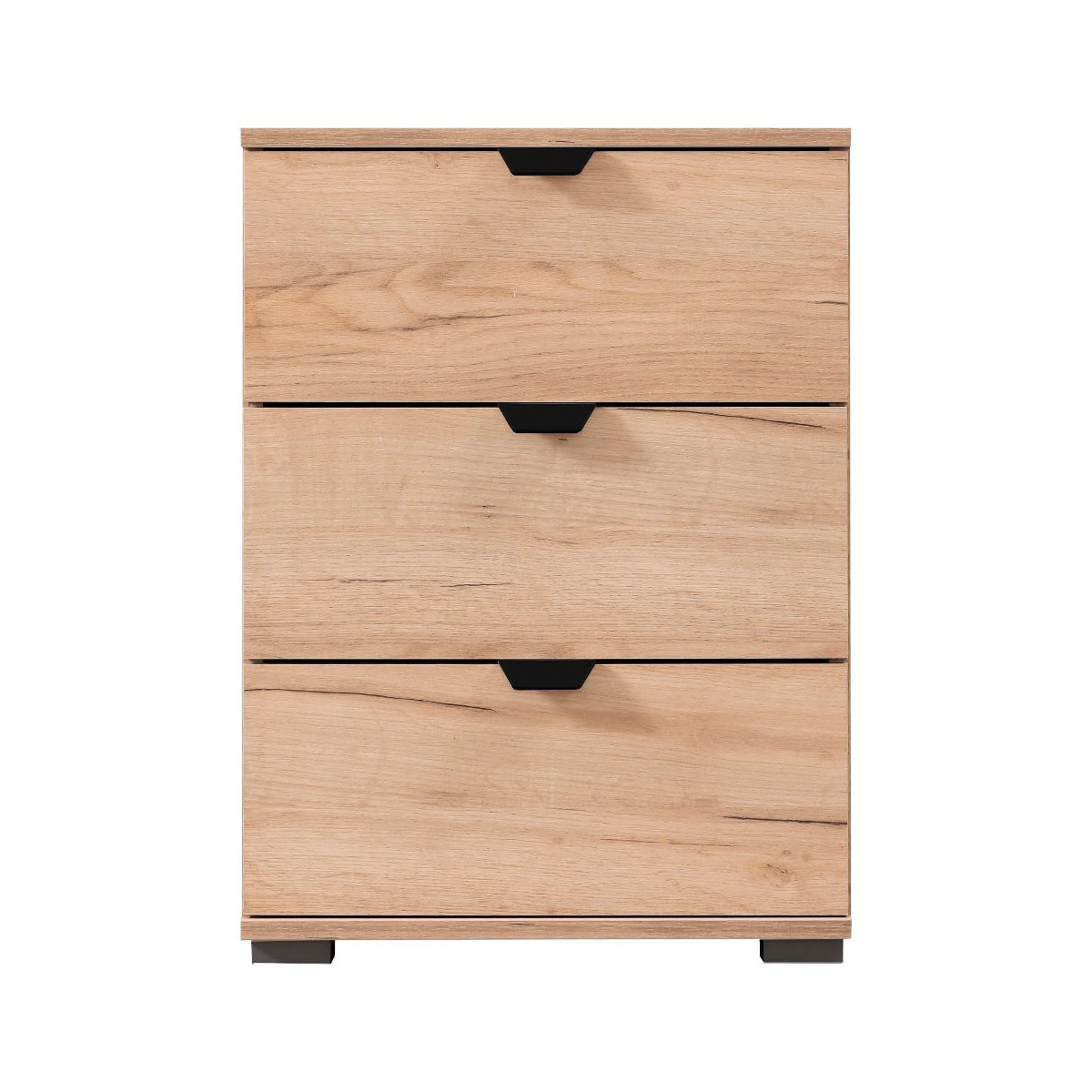 Composto da 3 cassetti. Apertura frontale, con maniglia. Frontale realizzato in truciolare. Struttura realizzata in truciolare. Completo di piedi. Posizionabile a terra. Necessita di assemblaggio, istruzioni incluse. Indicazioni per la manutenzione incluse