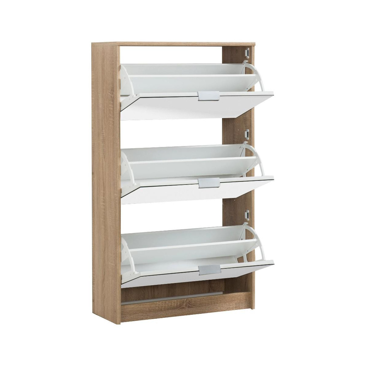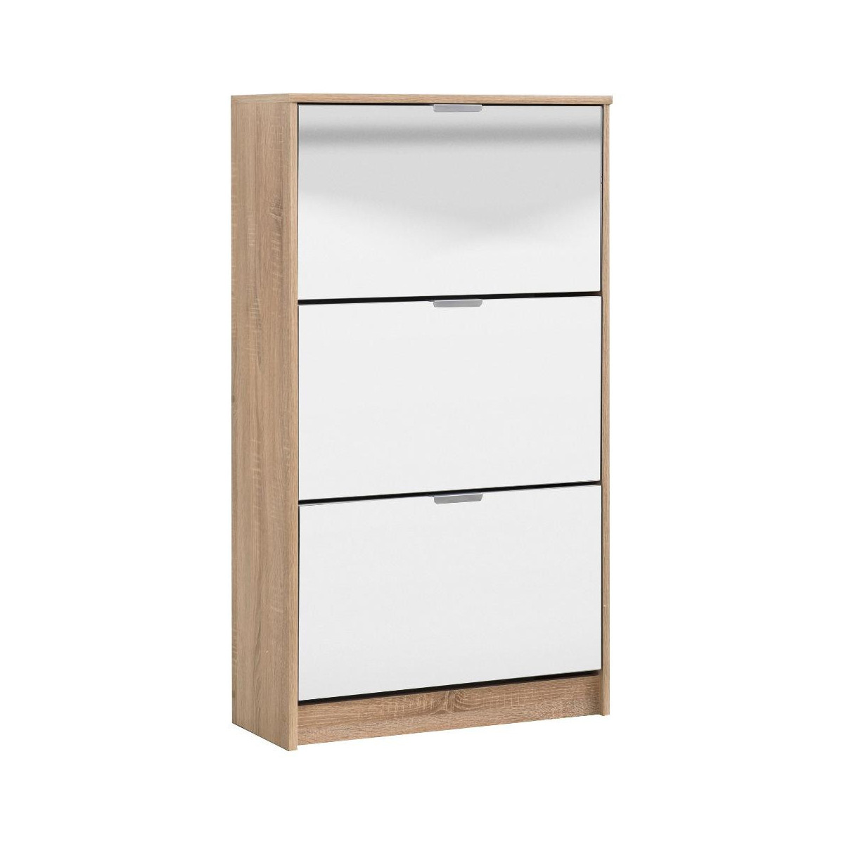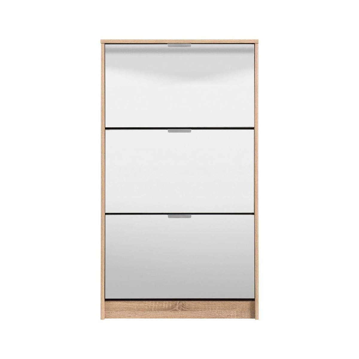 Kit Furniture Iceland Scarpiera, 18 Paia, Frontale con Specchio, 3 Ante Ribalta, 67x28x119 cm, Sonoma