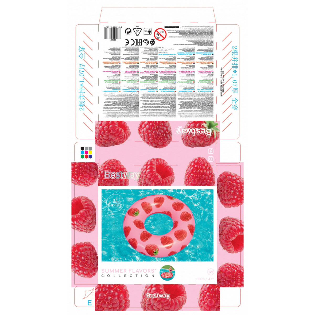 Bestway 36231. Colore del prodotto: Rosa, Rosso, Tipo di prodotto: Anello di nuoto, Colorazione: Immagine. Larghezza: 1060 mm, Profondità: 1060 mm, Altezza: 1060 mm. Larghezza imballo: 40 mm, Profondità imballo: 410 mm, Altezza imballo: 215 mm. Quantità di cartone da spedizione: 12 pz, Larghezza scatola principale: 265 mm, Lunghezza del cartone principale: 410 mm
