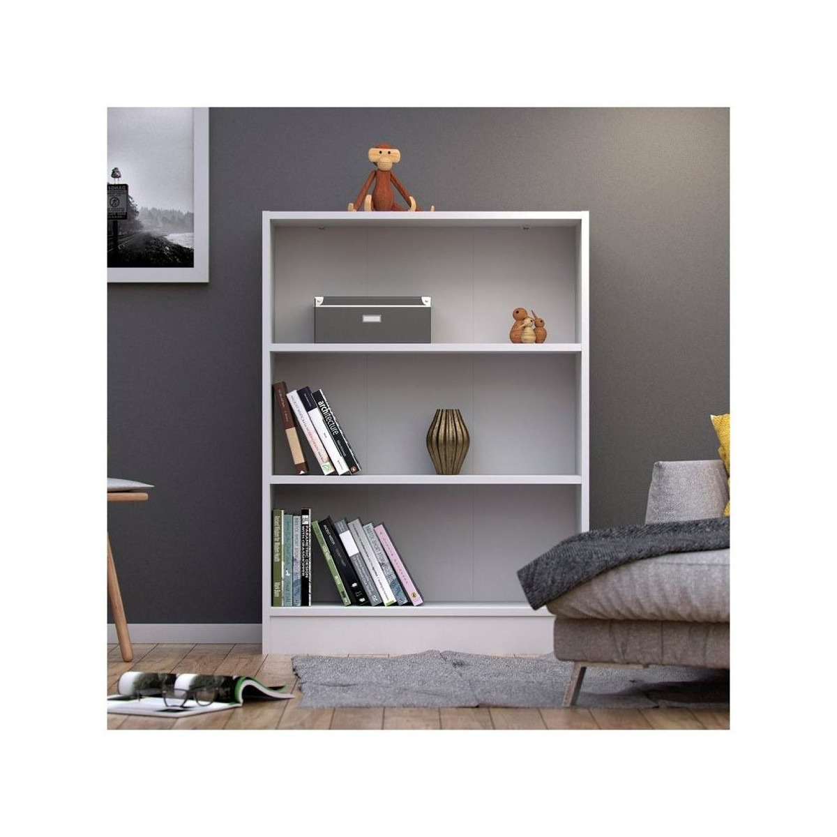 Libreria modulare a tre vani con due mensole regolabili in altezza e schienale posteriore in tinta per arredare con stile l'ufficio o altri ambienti della casa quali il soggiorno.