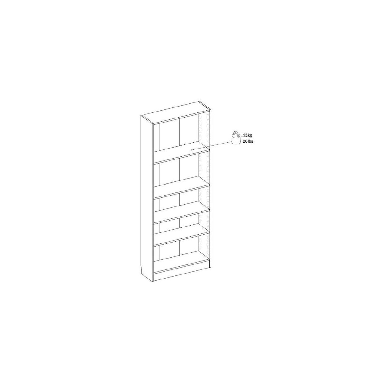 Tvilum Basik Libreria, 5 Vani Regolabili, 79x26,7x203,2 cm, Bianco