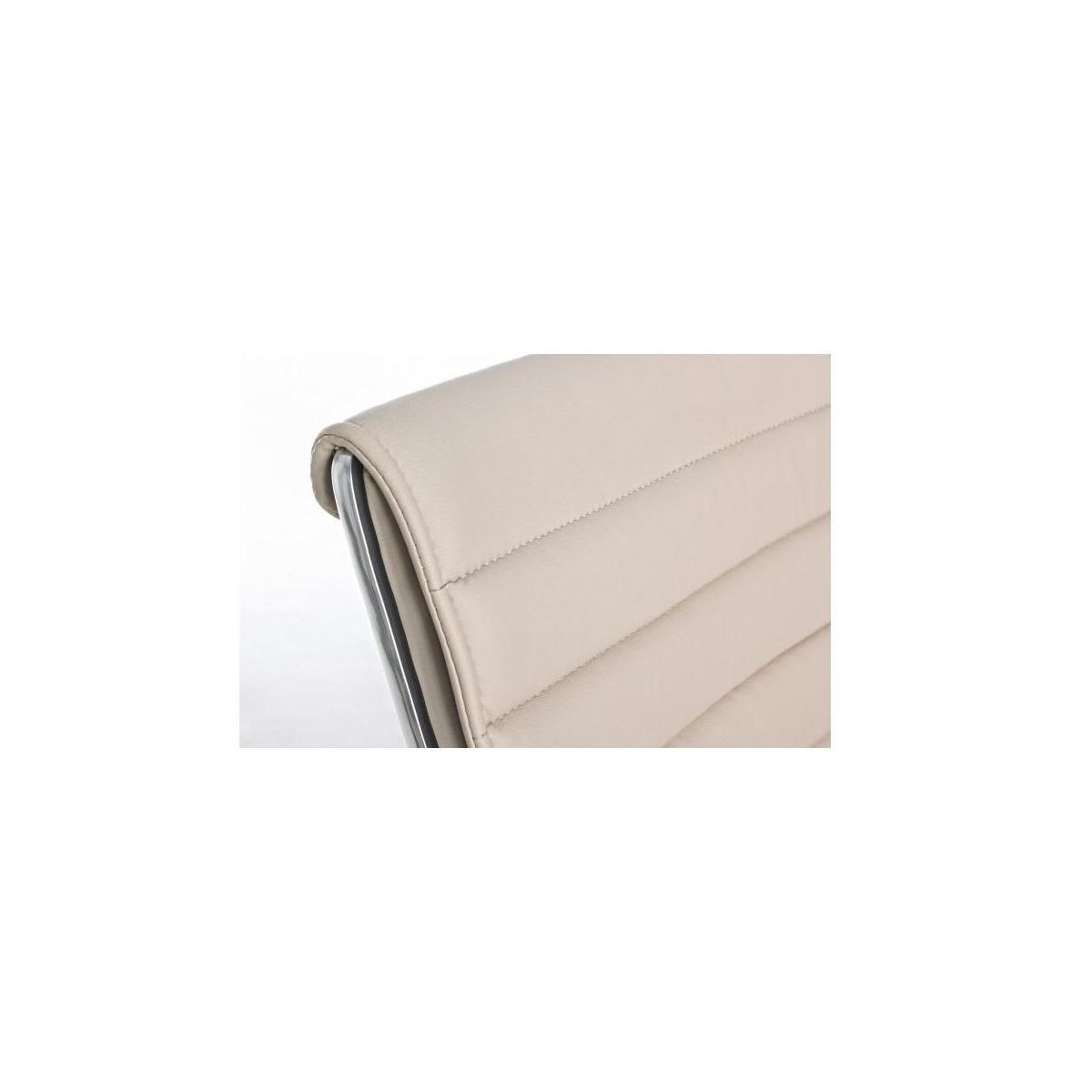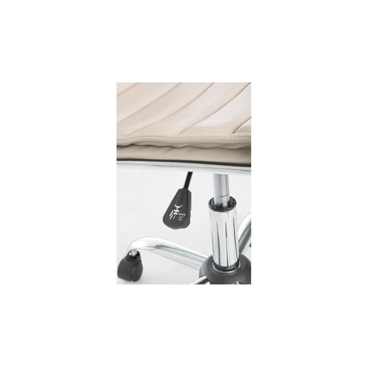 Base in acciaio cromato ø56 cm. Ruote in nylon. Seduta e schienale imbottiti e rivestiti in similpelle. Braccioli in acciaio cromato con rivestimento in similpelle. Altezza regolabile. Da assemblare