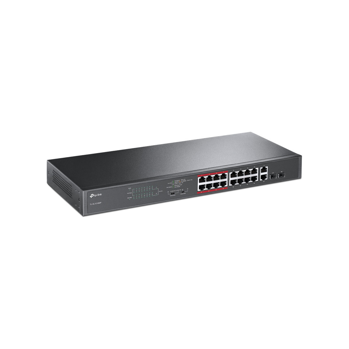 TP-Link TL-SL1218MP - Switch - unmanaged - 16 x 10/100 (PoE+) + 2 x 10/100/1000 + 2 x combo Gigabit SFP - montabile su rack (192 W)