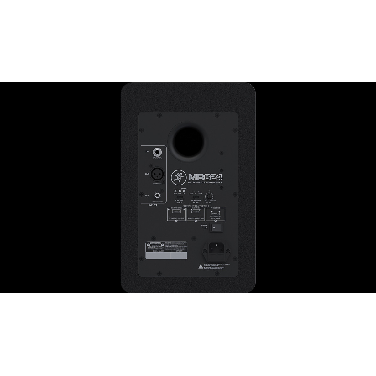 Mackie MR624. Utilizzo raccomandato: Studio. Tipo di speaker: 1-via, Sistema audio: 1.0 canali, Numero di driver: 2. Tecnologia di connessione: Cablato. Potenza in uscita (RMS): 40 W, Range di frequenza: 38 - 20000 Hz, Sensibilità: 4 dB. Colore del prodotto: Nero