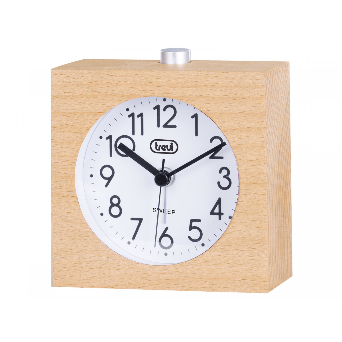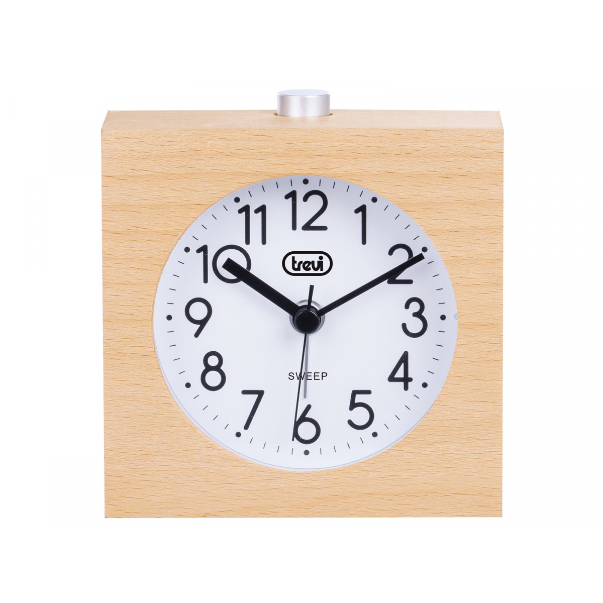 Trevi SL 3840. Tipo: Sveglia al quarzo, Forma: Quadrato, Colore del prodotto: Legno. Tipo di display: Analogico. Alimentazione: Batteria, Tipo batteria: Stilo AA, Tecnologia batteria: Alcalino. Larghezza: 94 mm, Altezza: 95 mm, Profondità: 42 mm