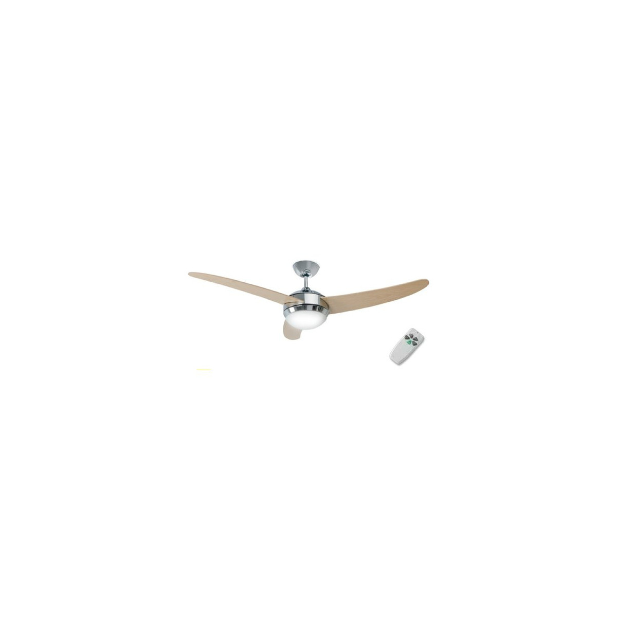 Ventilatore cromo 3 pale completo di kit luce vetro opale ÃÂ 18 cm 2 E27 MAX 40W con telecomando onde radio incl.