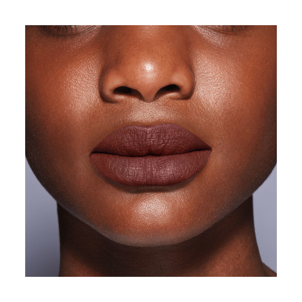 Un rossetto matte e leggero che offre copertura totale e colore vellutato a lunga tenuta.