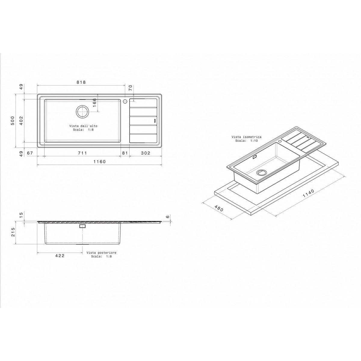 | Dimensioni prima vasca (LxL) | 711 x 402 mm |
