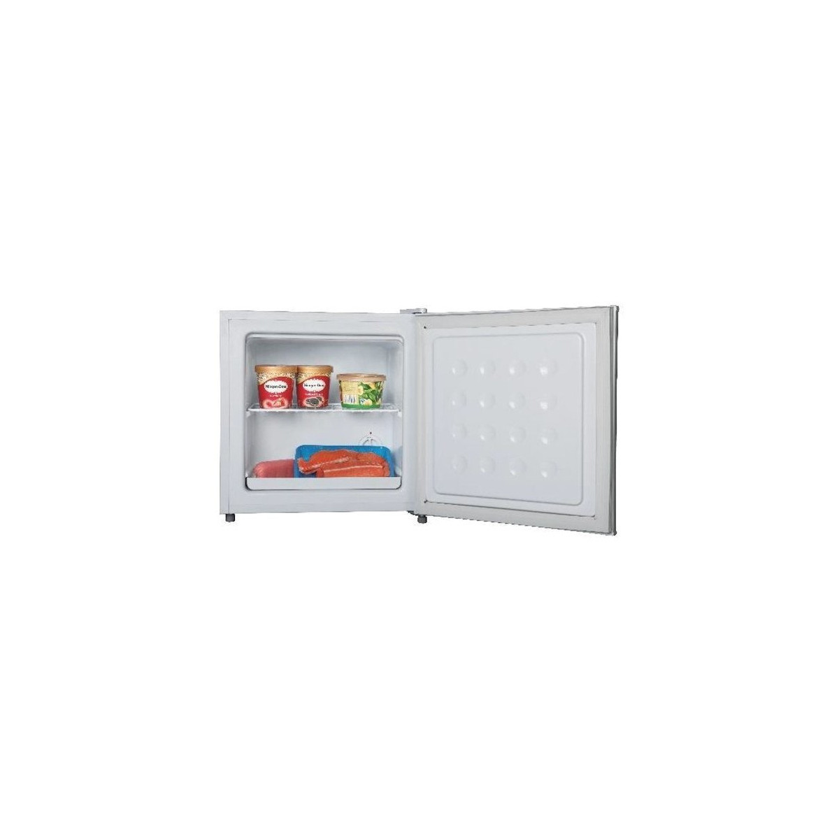 Comfeè RCD63WH1. Capacità netta congelatore: 31 L, Classe climatica: Starfish, Capacità di congelamento: 2 kg/24h, Emissione acustica: 41 dB, Punteggio: 4*. Cerniera porta: Destra. Classe efficienza energetica: F, Consumo energetico annuo: 184 kWh. Colore del prodotto: Bianco