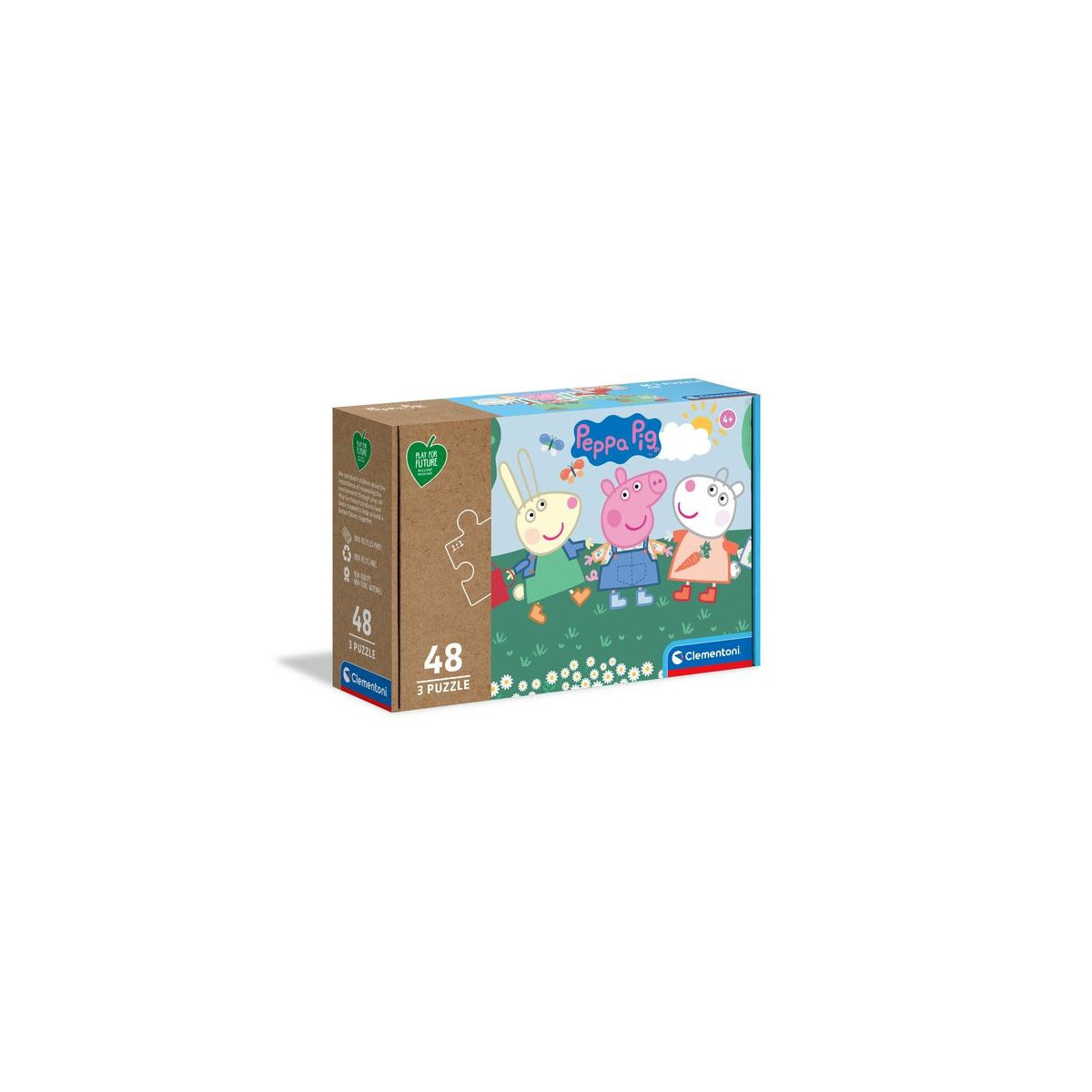 I puzzle sono realizzati con materiali 100% riciclati e riciclabili. I puzzle PLAY FOR FUTURE hanno lo scopo di trasmettere ai bambini concetti come l'ecosostenibilità ed il rispetto per l'ambiente. Made in Italy.