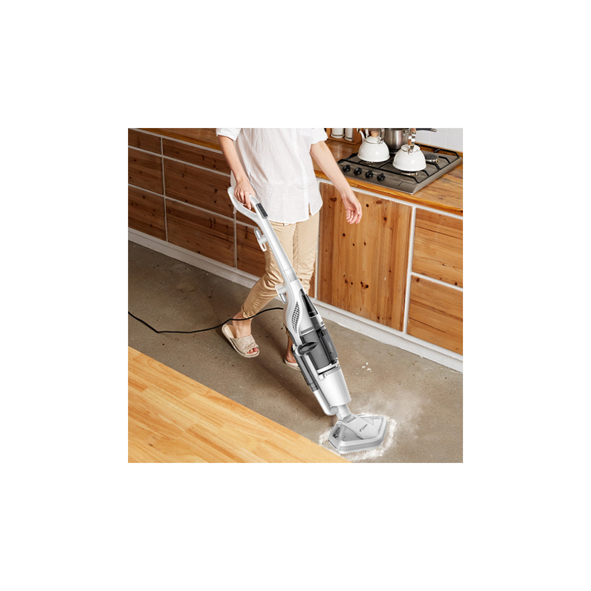 Deerma ZQ990W. Tipo: Pulitore a vapore verticale, Capacità: 0,38 L, Colore del prodotto: Nero, Bianco. Potenza: 1300 W, Alimentazione: AC, Tensione di ingresso AC: 220-240 V. Temperatura (max): 100 °C, Emissione acustica: 90 dB. Lunghezza cavo: 5 m. Larghezza: 300 mm, Profondità: 237 mm, Altezza: 1157 mm