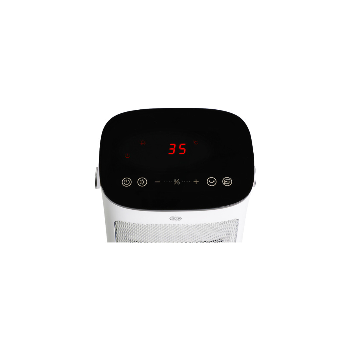 Argoclima Cloe. Tipo: Riscaldatore ambiente elettrico con ventilatore, Tipologia elemento riscaldante: Ceramica, Durata massima del timer: 12 h. Adatto per: Interno, Opzioni di posizionamento: Scrivania, Pavimento, Colore del prodotto: Bianco. Potenza termica: 2000 W, Potenza termica (min): 1300 W, Adatto per stanze fino a: 60 m³. Potenza: 2000 W, Tensione di ingresso AC: 220 - 240 V, Frequenza di ingresso AC: 50 Hz. Larghezza: 140 mm, Profondità: 193,4 mm, Altezza: 341 mm