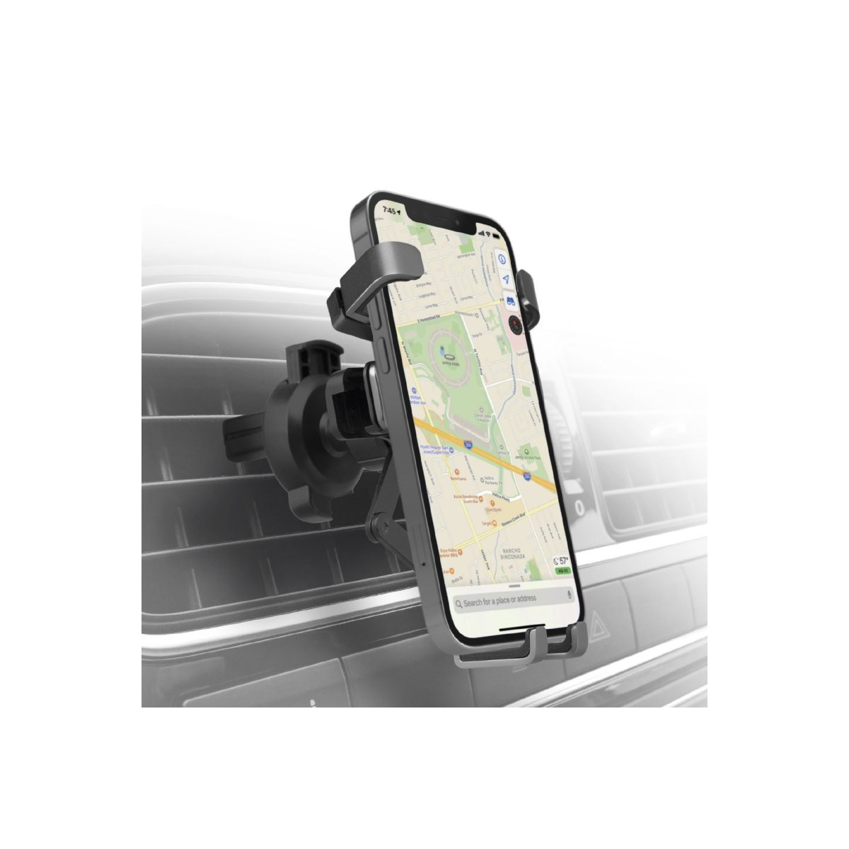Il supporto in metallo per telefono Gravity Pro con meccanismo a gravità è dotato di una clip regolabile sul retro per un fissaggio comodo e veloce a qualsiasi modello di bocchetta d’aerazione dell’auto. L’attacco non è mai stato così semplice e immediato.