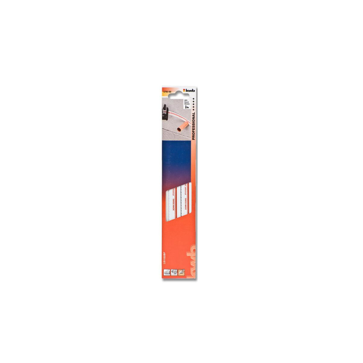 kwb 579500. Tipo di prodotto: Lama per sega universale, Adatto per materiali: Alluminio, Metallo, Di metalli non ferrosi, Materiale lama: Bimetallo. Lunghezza di lavoro: 20,5 cm, Spaziatura dei denti della lama: 2 mm. Lunghezza totale: 22,8 cm. Quantità per pacco: 2 pz, Tipo di imballo: Blister