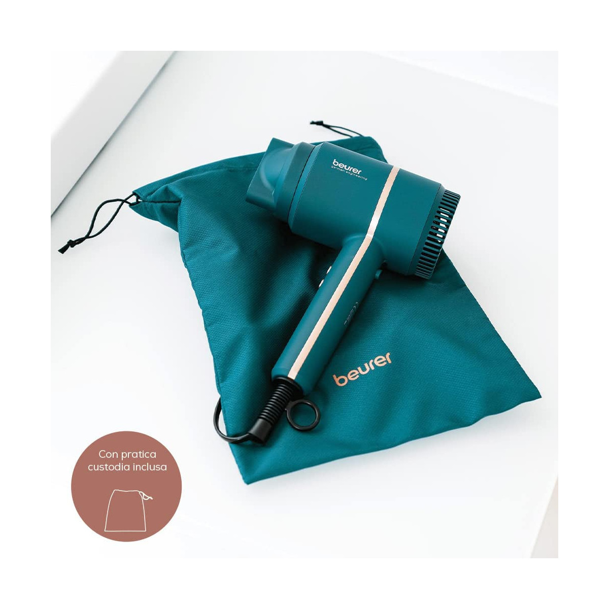 Beurer HC 35 Ocean Blue Asciugacapelli Compatto, Ioni e Display LED