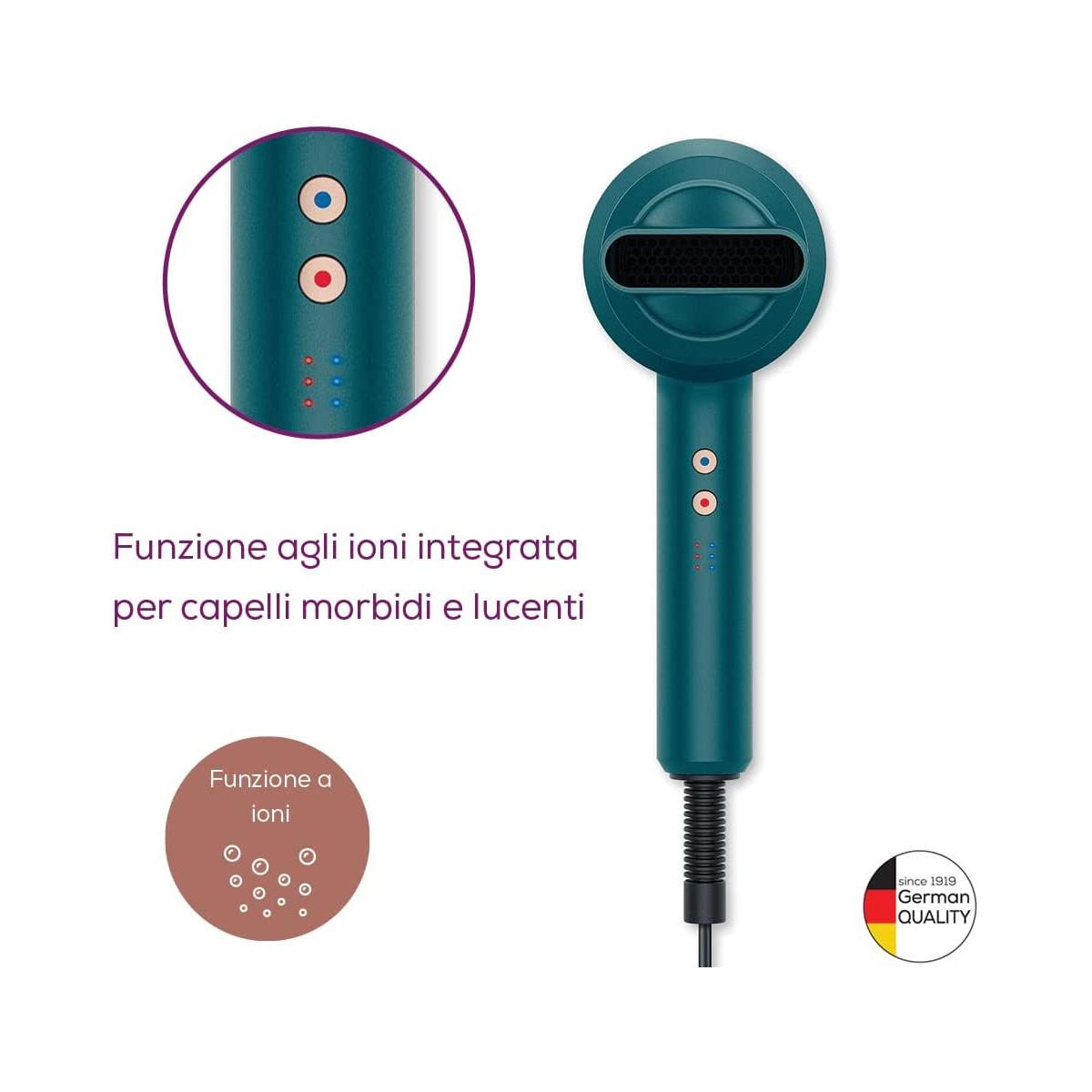 - Funzione agli ioni per capelli morbidi e lucenti