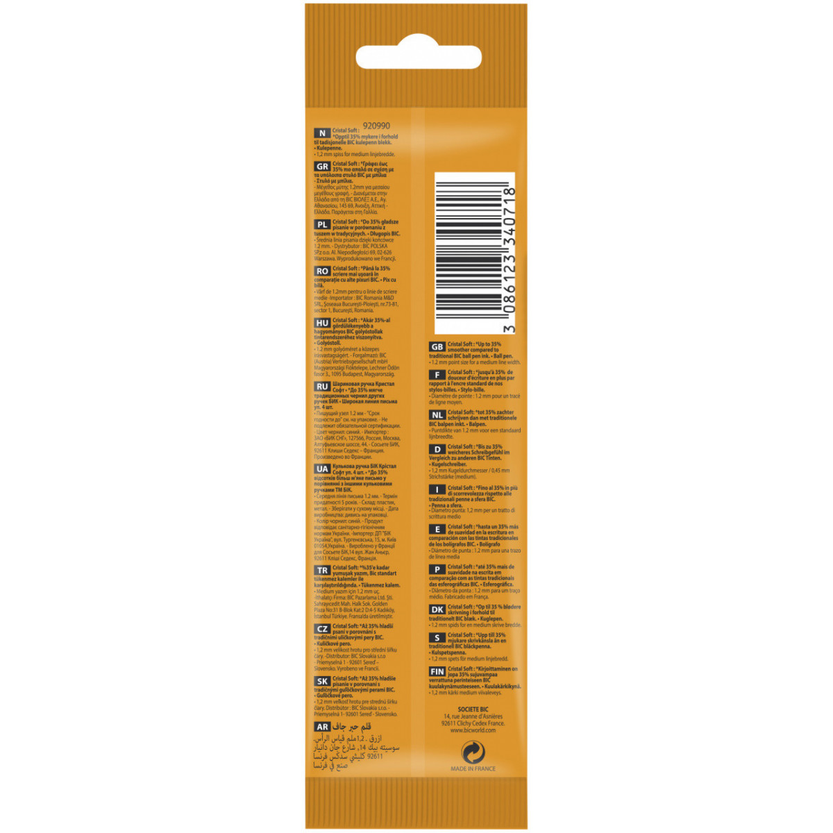 BIC Cristal Soft, Penne Blu a Sfera (Punta Media 1.2mm), Confezione da 4. Colore del prodotto: Blu, Colore penna: Blu, Tipo: Penna a sfera. Quantità per pacco: 4 pz