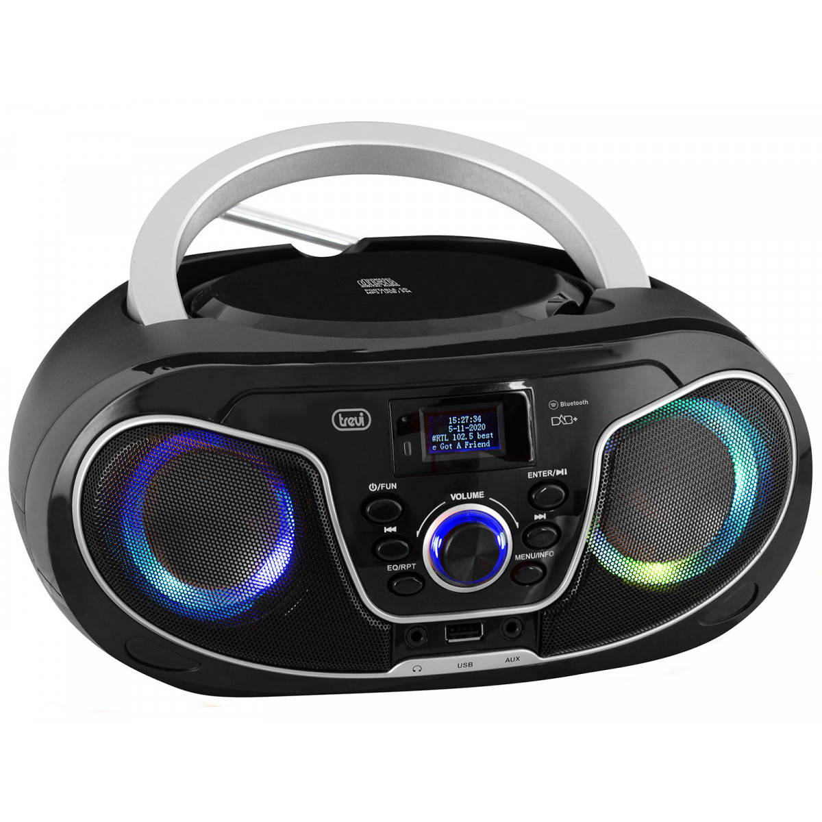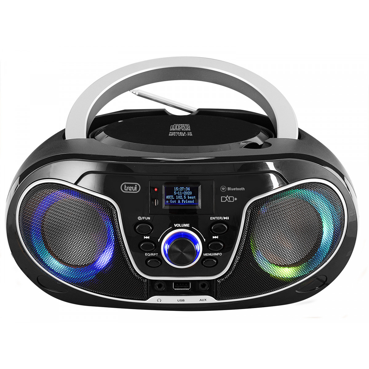 Trevi CMP 588 DAB è uno stereo portatile, ideale per ascoltare musica da CD, memorie flash e radio. Facile da trasportare grazie al comodo maniglione di cui è provvisto, ha anche un display retroilluminato blu ad alta leggibilità Dot Matrix.