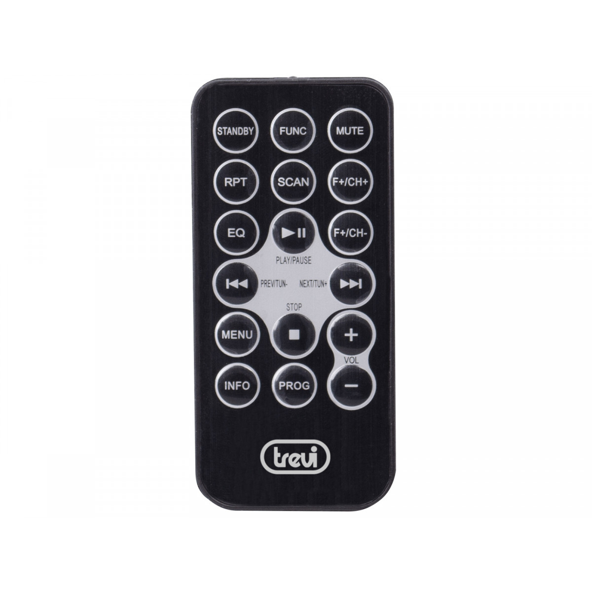 Lo stereo di Trevi ha un lettore CD, ingressi USB e AUX-IN, una presa cuffia e una connessione Bluetooth, ideale per collegarlo wireless senza fili a smartphone e tablet. Tramite radio DAB, oltre alle classiche frequenze analogiche, con CMP 588 DAB potrai ricevere tutte le stazioni che trasmettono con segnale digitale. Nella dotazione è compreso anche un comodo telecomando, per gestire comodamente lo stereo anche a distanza.