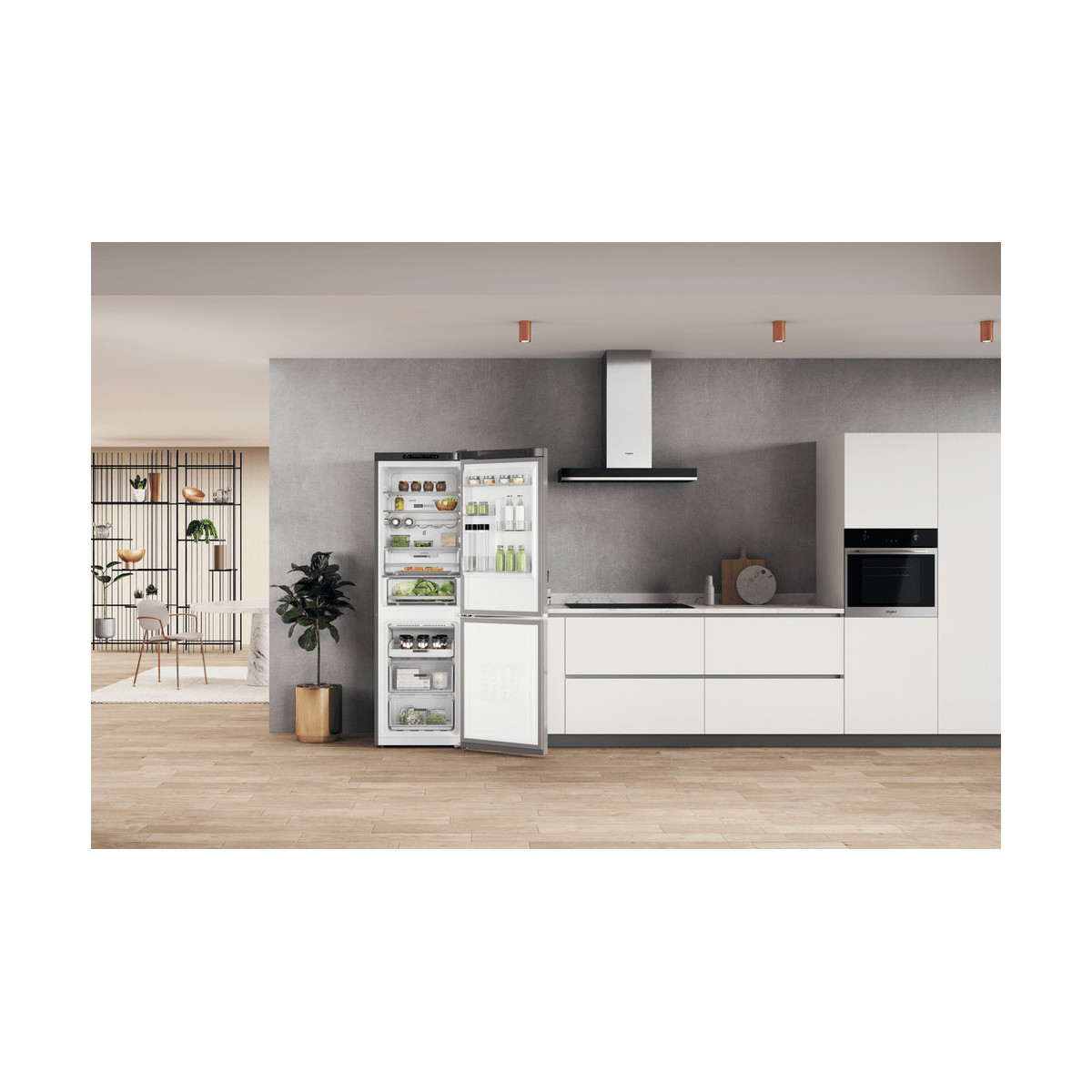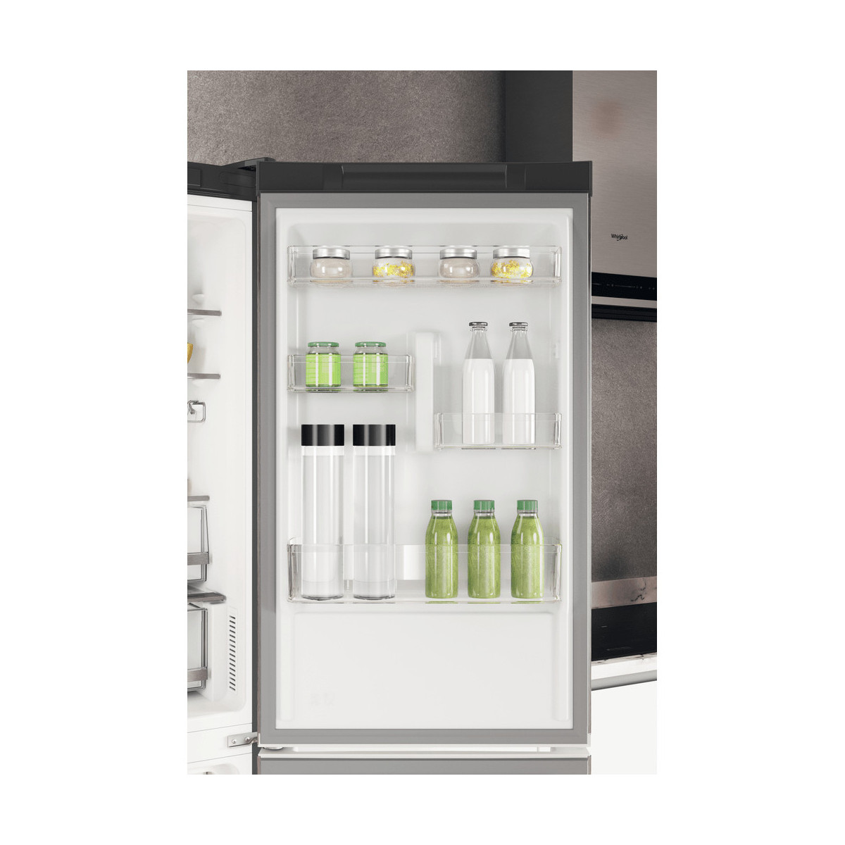 Caratteristiche di questo frigorifero combinato a libera installazione Whirlpool: color inox. Design Optic Inox con protezione anti-impronte. No Frost, la tecnologia che previene efficacemente la formazione di ghiaccio nel congelatore riducendo i livelli di umidità. Modello alto e capiente, adatto per le esigenze di tutta la famiglia. Ripiani in vetro, robusti ed eleganti al tempo stesso.
