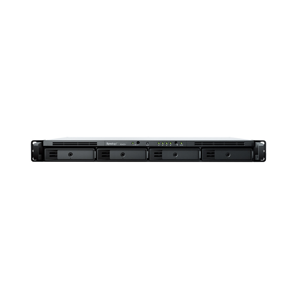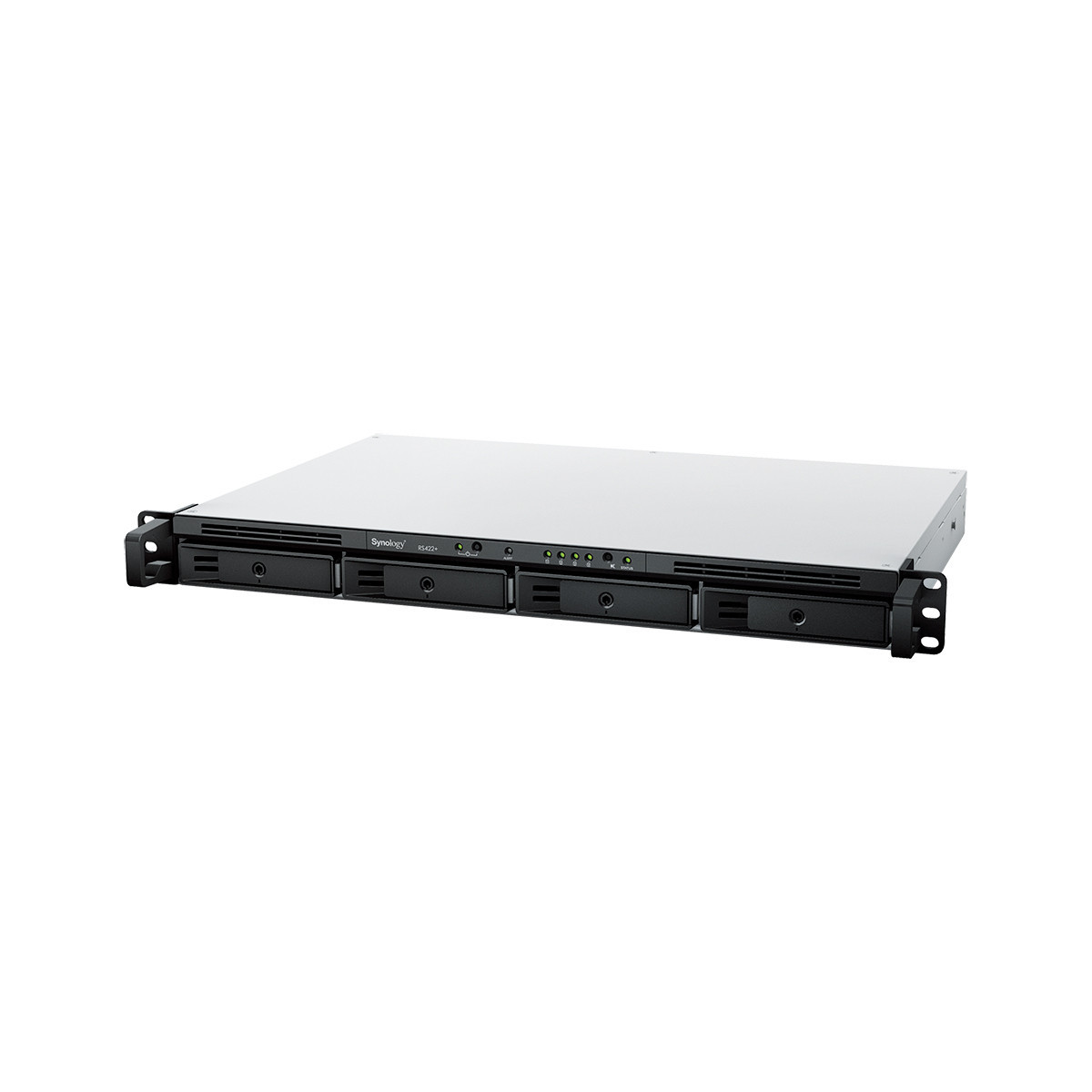 Synology RackStation RS422+. Tipi di unità di archiviazione supportate: HDD & SSD, Interfacce dell'unità di archiviazione supportate: SATA, Dimensioni dei dispositivi di archivio supportati: 2.5,3.5". Famiglia processore: AMD Ryzen, Produttore processore: AMD, Modello del processore: R1600. Velocità trasferimento Ethernet LAN: 1000 Mbit/s, Protocolli di rete supportati: SMB, AFP, NFS, FTP, WebDAV, CalDAV, iSCSI, Telnet, SSH, SNMP, and VPN (PPTP, OpenVPN, L2TP). Tipo di case: Rack (1U), Tipo di raffreddamento: Attivo, Colore del prodotto: Nero. Tipo: NAS, Classe del dispositivo: Casa e piccoli uffici, Numero di utenti: 2048 utente(i)