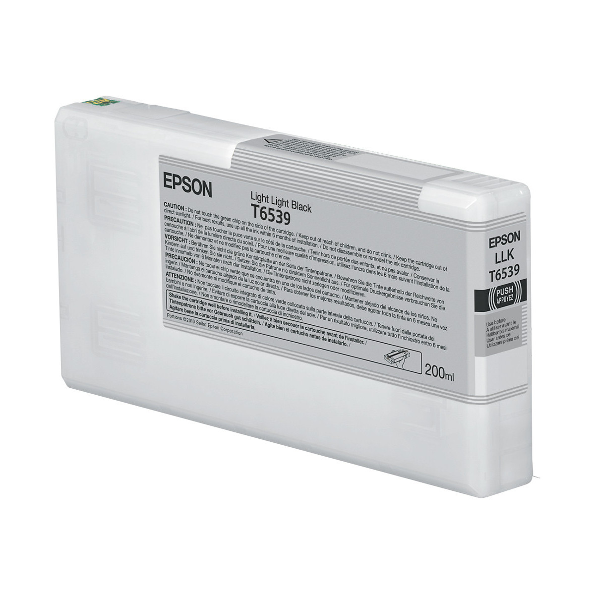 Epson Tanica Nero-light light. Tipo: Originale, Tipo di inchiostro: Inchiostro a base di pigmento, Colori di stampa: Nero light light. Larghezza imballo: 40 mm, Profondità imballo: 215 mm, Altezza imballo: 115 mm. Ampiezza del pallet: 80 cm, Lunghezza del pallet: 120 cm, Altezza del pallet: 51 cm