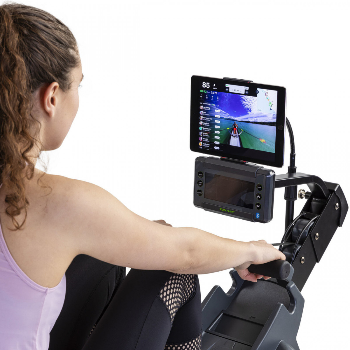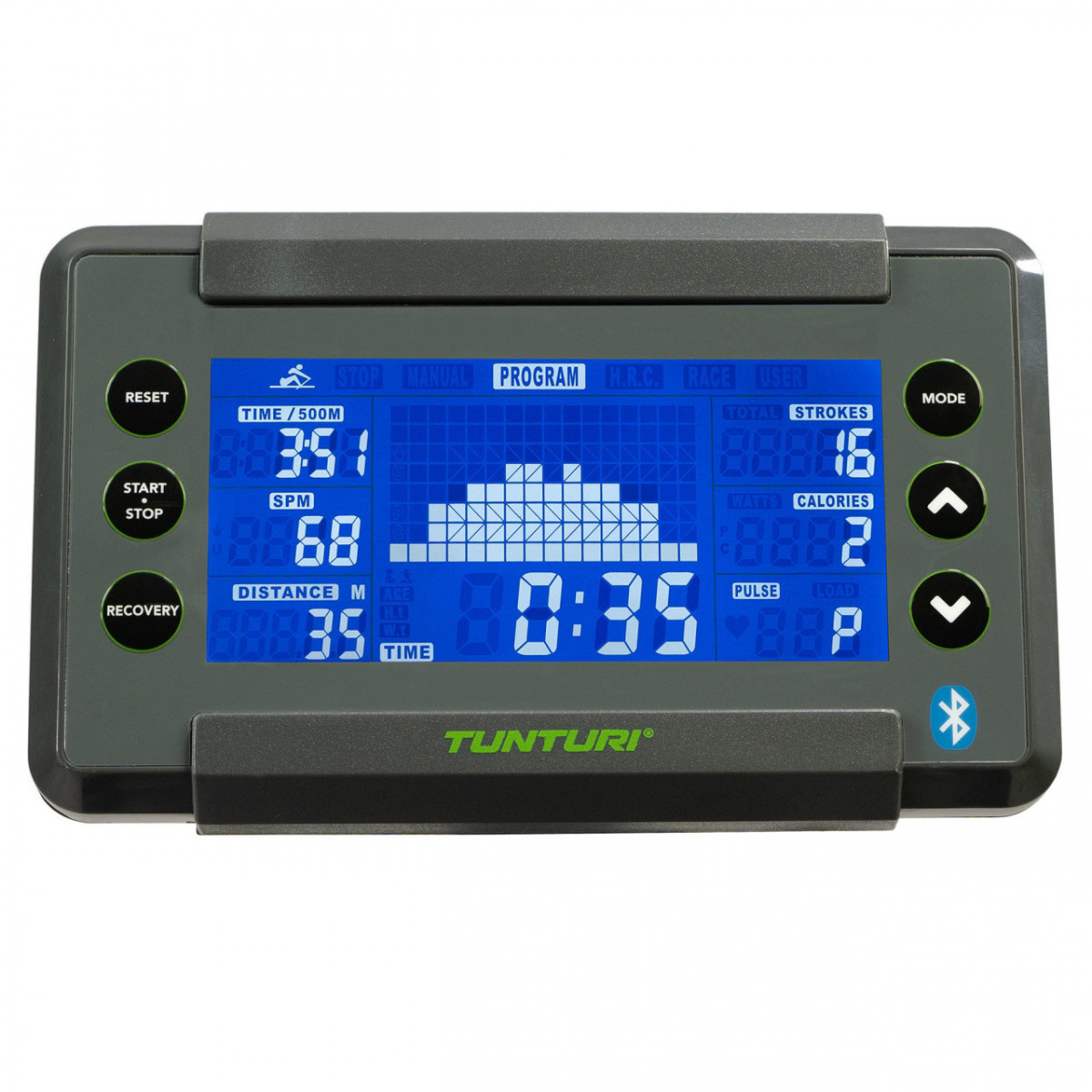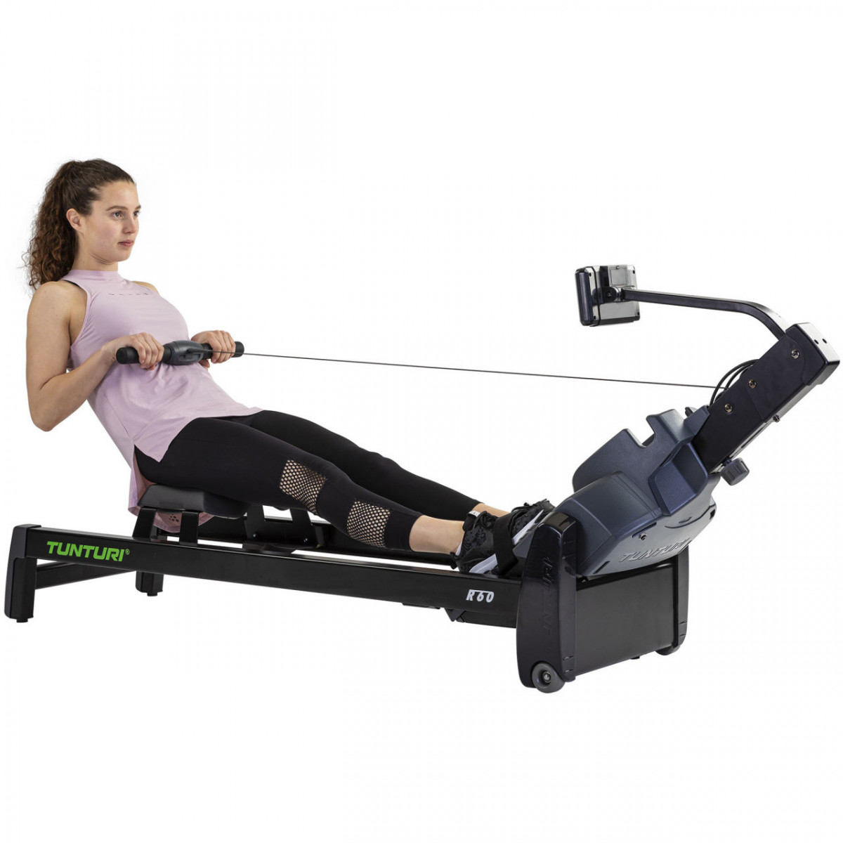 Il vogatore R60 ha un monitor di facile utilizzo con vari parametri e una rappresentazione grafica dei profili di allenamento. Il vogatore può essere azionato anche con i pulsanti sull'impugnatura del vogatore, ad esempio per regolare l'intensità dell'allenamento, in modo da non dover interrompere l'allenamento per toccare il monitor. Il vogatore è facile da piegare e riporre utilizzando le ruote di trasporto, in modo che non sia mai d'intralcio. L'R60 è dotato di una connessione bluetooth, con la quale è possibile connettersi ad app di allenamento come Tunturi Routes, iConsole+, Kinomap e Zwift. Questo mantiene l'allenamento sempre divertente e stimolante.