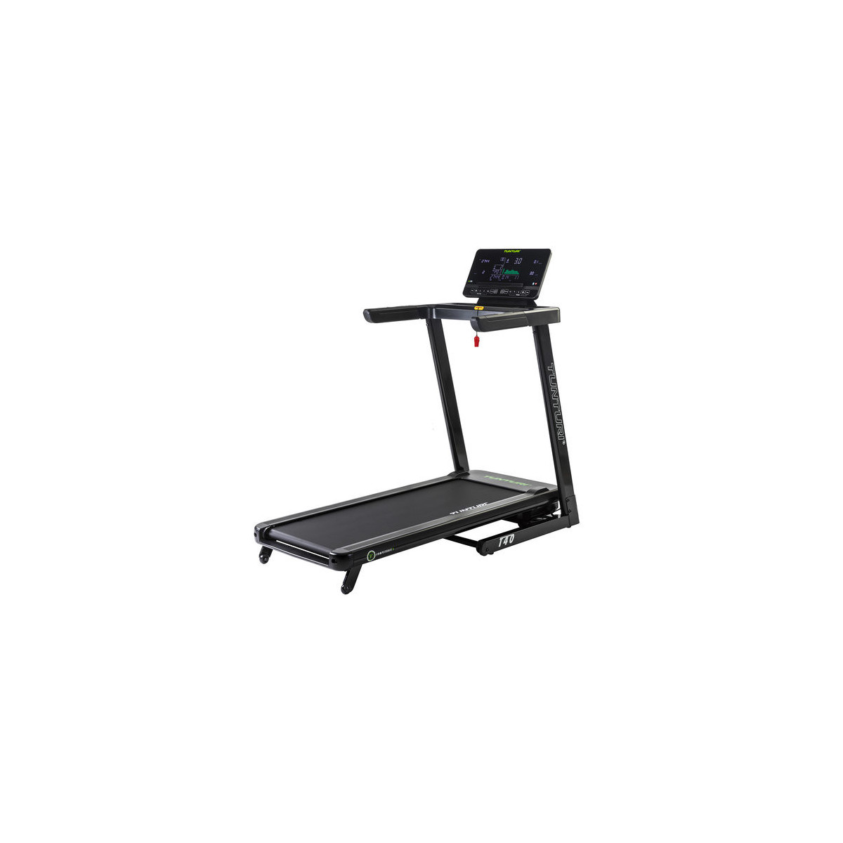 Tunturi T40. Peso massimo per utente: 120 kg, Velocità minima: 1 km/h, Velocità massima: 16 km/h. Tipologia display: LED, Dimensioni schermo: 25,4 cm (10"). Tensione di ingresso AC: 230 V, Frequenza di ingresso AC: 50-60 Hz, Potenza motore: 3,5 cv. Area di corsa (A x L): 450 x 1250 mm, Larghezza: 740 mm, Profondità: 1550 mm