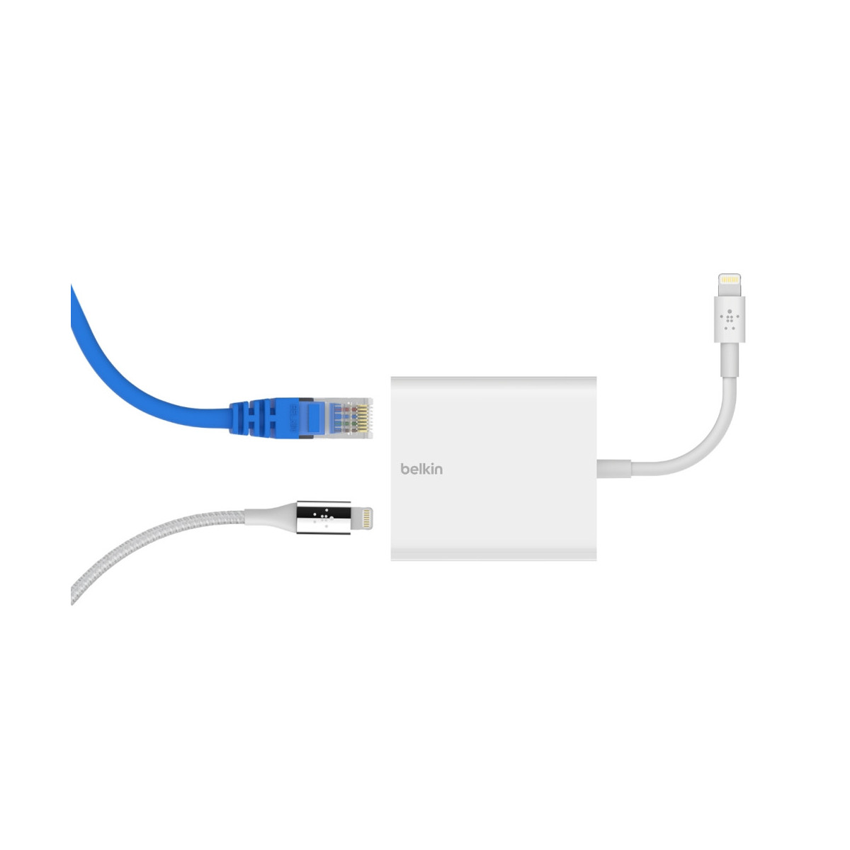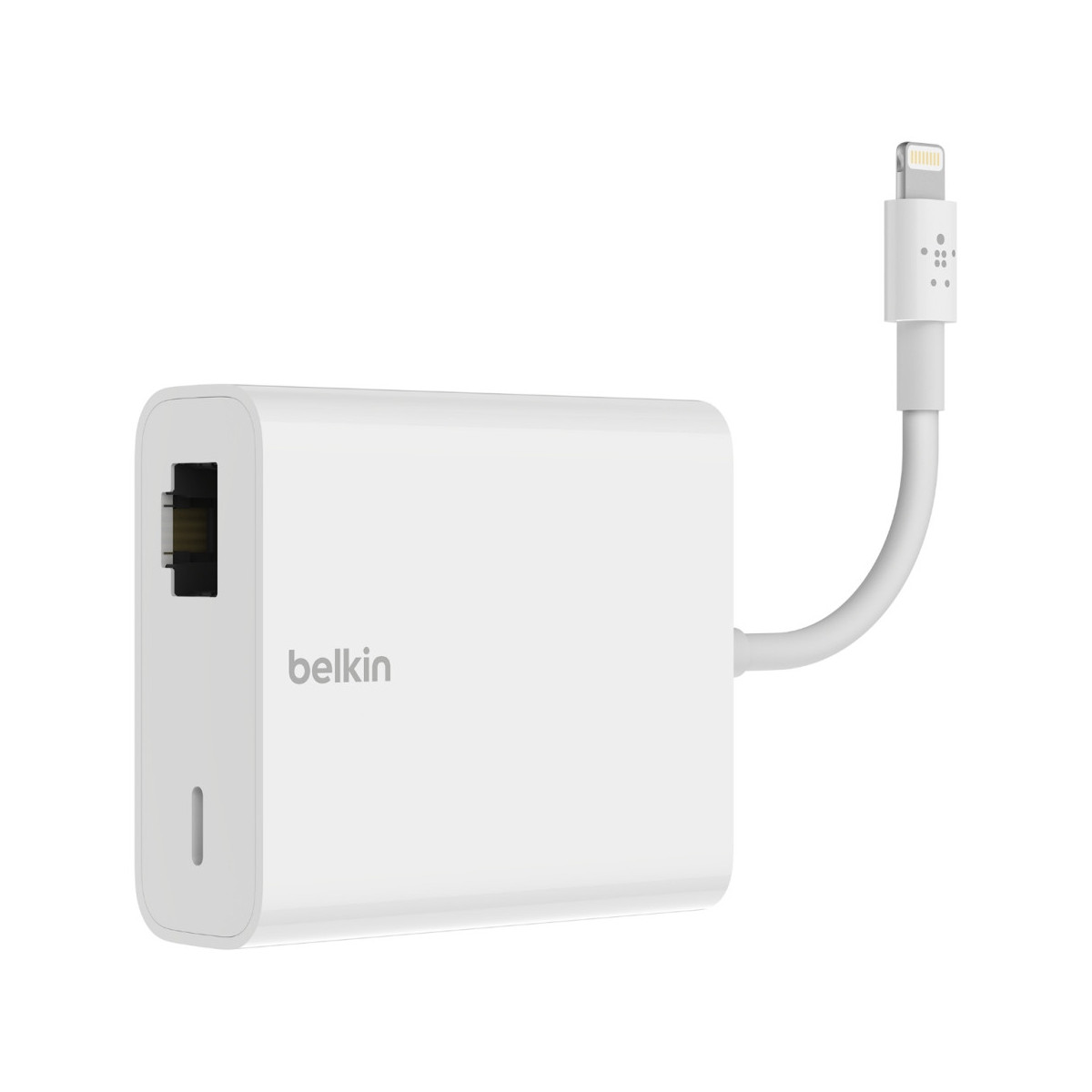 Belkin B2B165BT. Interfaccia host: Lightning, Interfaccia di uscita: RJ-45. Colore del prodotto: Bianco, Certificazione: MFi. Velocità massima di trasmissione: 0,48 Gbit/s. Consumi: 12 W. Larghezza: 53,8 mm, Profondità: 144 mm, Altezza: 21,5 mm