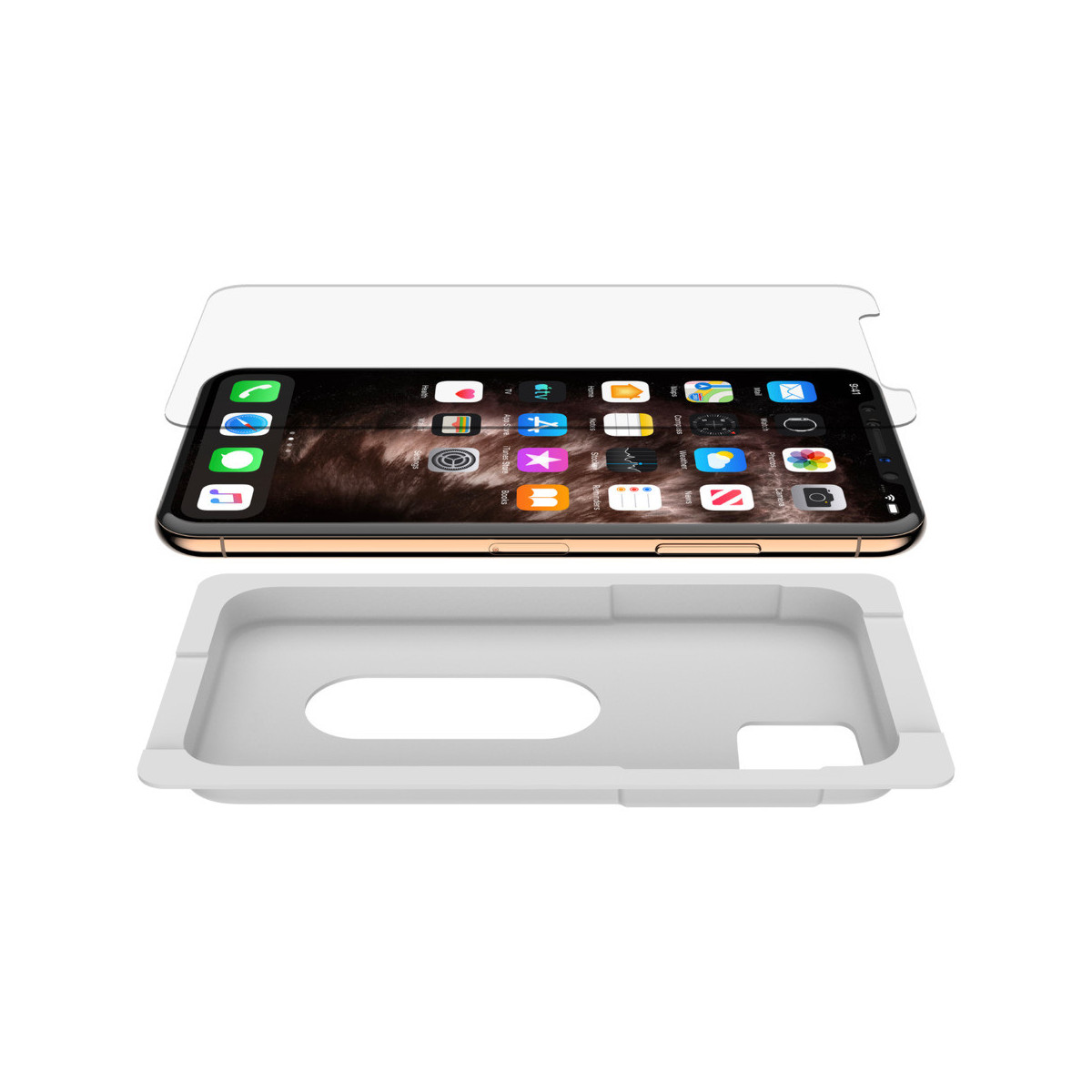 Belkin SCREENFORCE. Tipo di protezione per schermo: Pellicola proteggischermo trasparente, Compatibilità marca: Apple, Compatibilità: iPhone 11 Pro Max, iPhone XS Max, Funzioni di protezione: Antibatterico, Resistente agli urti. Colore del prodotto: Trasparente. Quantità per pacco: 1 pz