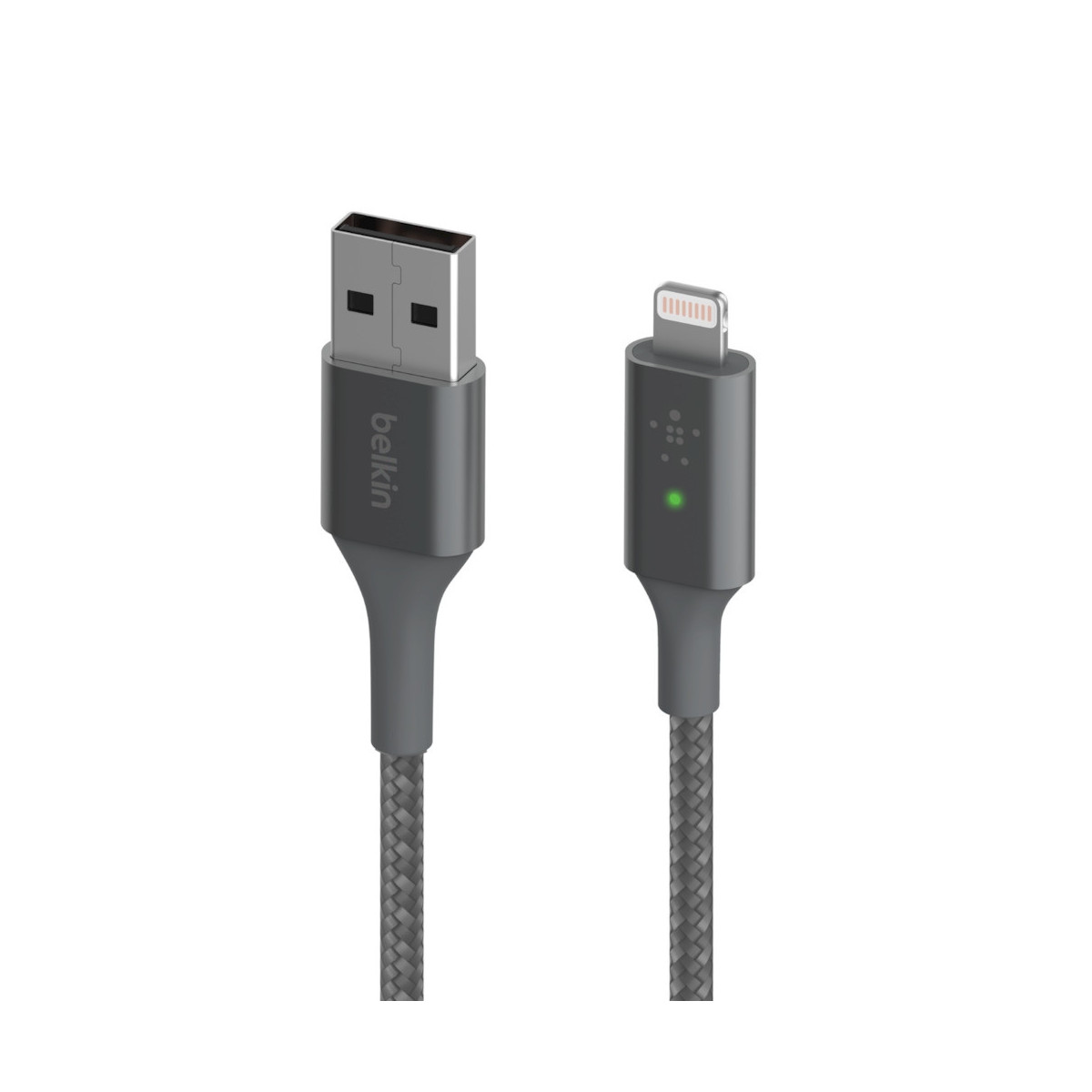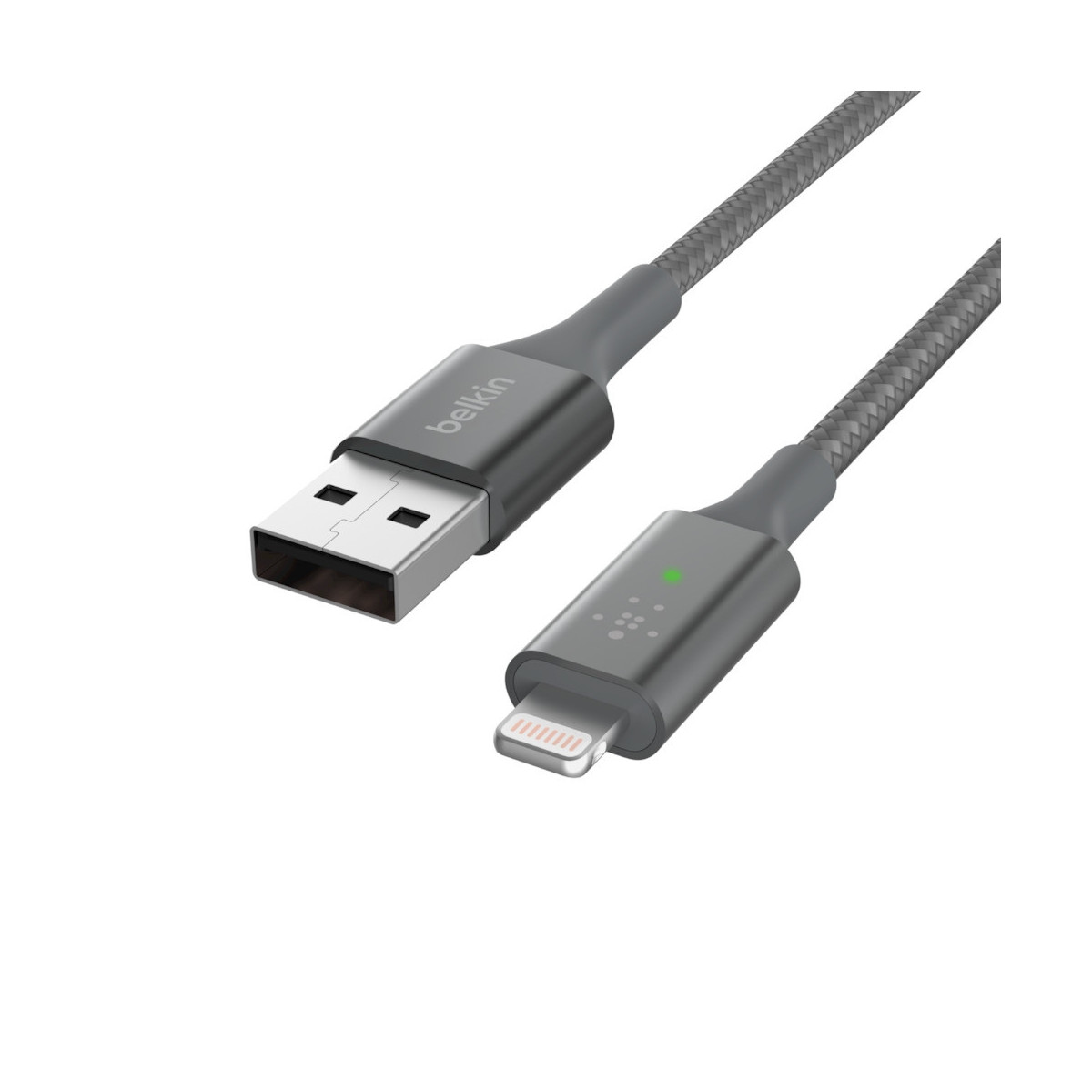 La più, recente tecnologia LED intelligente di Belkin permette di visualizzare all',istante lo stato di ricarica del tuo iPhone. La scheda del circuito personalizzata con firmware brevettato comunica con la batteria dell',iPhone e mostra una luce verde o arancione a seconda del livello di carica del dispositivo. La luce arancione significa che l',iPhone è, collegato e in ricarica, mentre la luce verde indica che la ricarica è, completa. Corredato di una certificazione MFi e dotato di un connettore USB-A universalmente compatibile, questo cavo ti permette di ricaricare fino a 12 W, usando un caricabatteria da parete o da auto. Questo cavo di ricarica per iPhone resta intatto nell',aspetto e nelle funzionalità, anche con il passare del tempo, grazie al serracavo in alluminio di grado aeronautico e alla guaina in nylon a doppia intrecciatura, che resistono all',usura quotidiana.