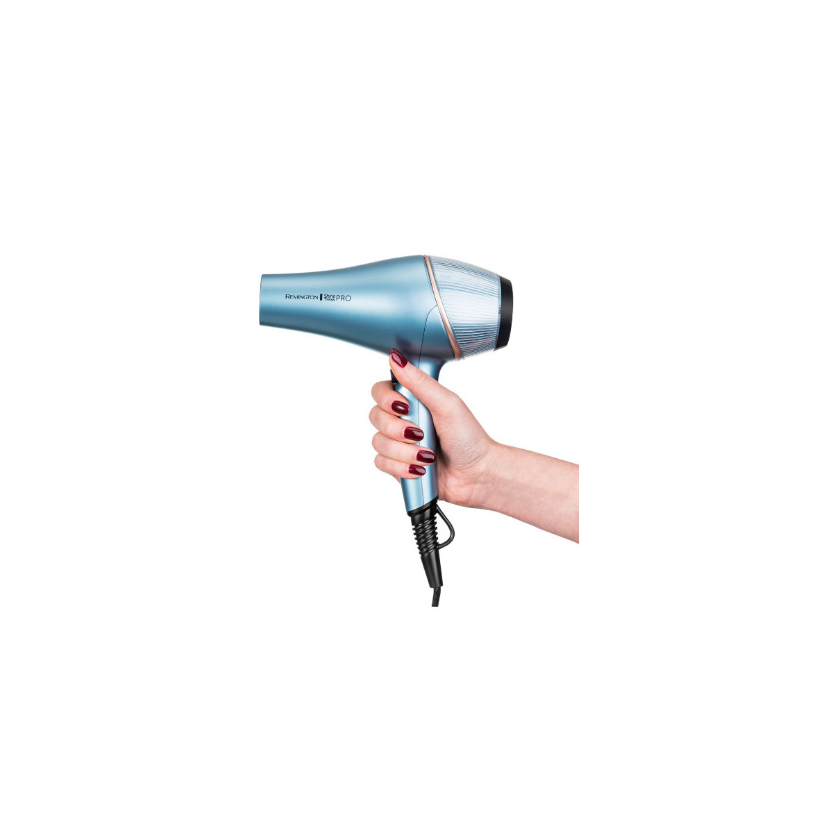 E' risaputo che lo styling quotidiano possa risultare nocivo sui capelli. E' per questo che l'asciugacapelli Shine Therapy PRO AC rilascia micro particelle infuse di olio di Argan Marocchino che vengono rilasciate nel flusso d'aria calda depositandosi sui capelli per non comprometterne la bellezza e la lucentezza.