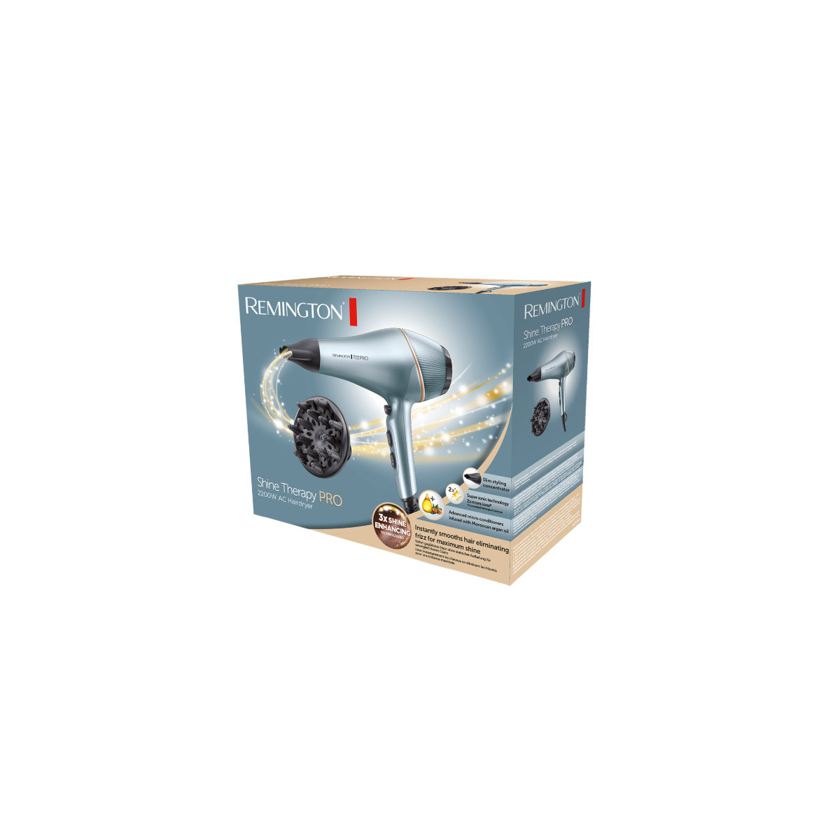 L'asciugacapelli Shine Therapy PRO AC è dotato di tecnologia 3x Shine Enhancing per ammorbidire i capelli ed eliminare l'effetto crespo, garantendo un aspetto sano e luminoso.