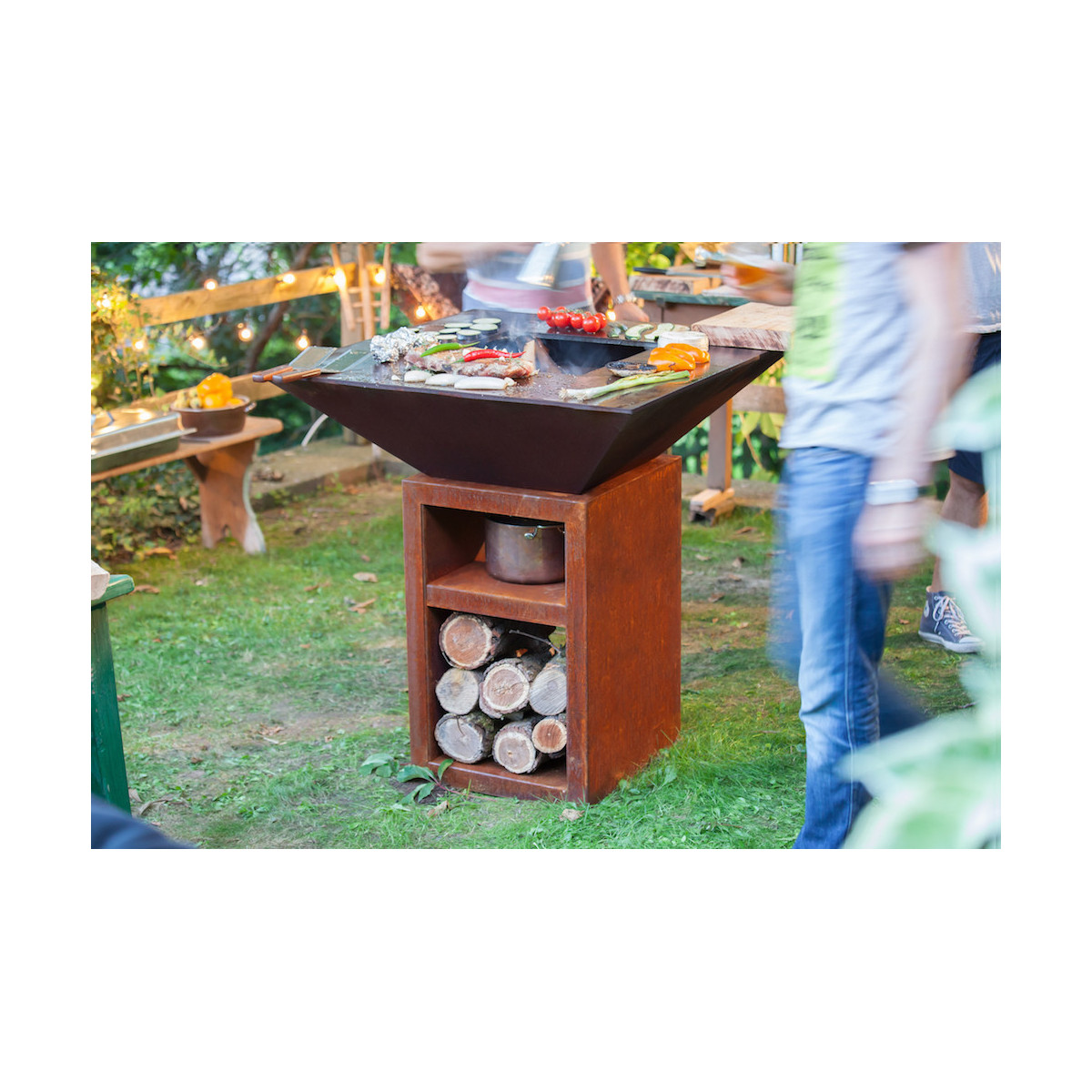 Le griglie Vulcanus hanno un design unico protetto da brevetto. Il corpo delle griglie è realizzato in acciaio COR-TEN patinato, che ha una lunga durata e può resistere a qualsiasi condizione esterna. È inoltre munito di nucleo di accumulo in ceramica per una migliore circolazione dell'aria calda, stabilità termica e consumo ridotto di legna. Quindi, se vivi in zone più fredde o grigli tutto l'anno, questa è la scelta giusta.