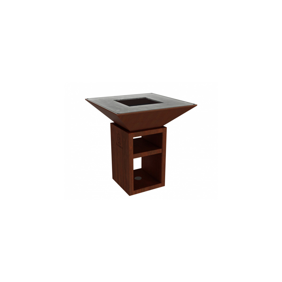 Le griglie Vulcanus hanno un design unico protetto da brevetto. Il corpo delle griglie è realizzato in acciaio COR-TEN patinato, che ha una lunga durata e può resistere a qualsiasi condizione esterna. È inoltre munito di nucleo di accumulo in ceramica per una migliore circolazione dell'aria calda, stabilità termica e consumo ridotto di legna. Quindi, se vivi in zone più fredde o grigli tutto l'anno, questa è la scelta giusta.